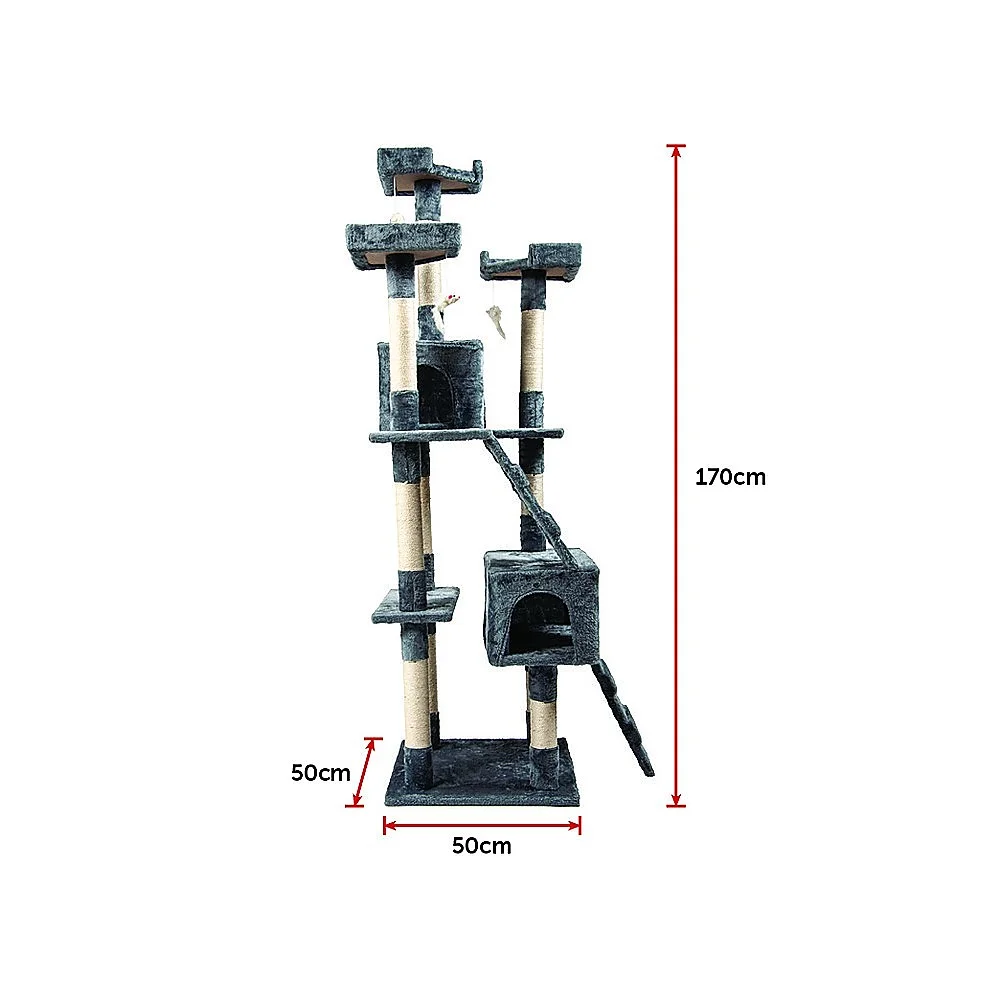 YES4PETS 244 cm XL Multi Level Cat Scratching Post Tree Scratcher Pole- Grey