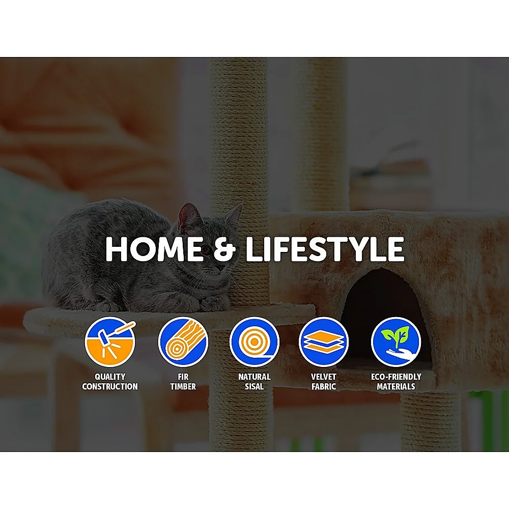 Crafted from natural sisal and E1 standard board, this huge cat condo is completely eco-friendly yet durable built to last. Its plush velvet upholstery pampers your cat like the royal pet she is even as its neutral timber and sisal material blend in with your home's other furnishings.