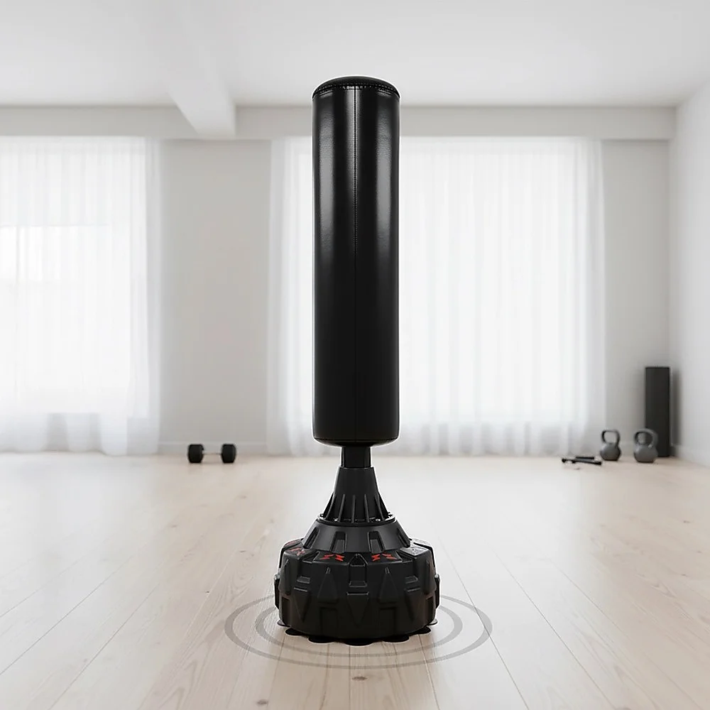 Boxing and other martial arts are booming in popularity as people discover their benefits. No longer just for self-defence, these sports increase agility and cardiovascular fitness, making them perfect for cross-training and general fitness. Now, you can train at home as well as in the gym with this free-standing punching bag and stand by Randy Travis Machinery. Standing at 170 centimetres, the bag simulates an opponent of about average height to make your workout as real as it gets without the counterpunch. With high-resilience hydraulic foam padding and elastic fabric, it springs right back with each punch, protecting your hands from injury. A double layer of PU leather gives it added durability for long wear, even under heavy use. A tethered loop on the base reduces the swing, giving you more control.