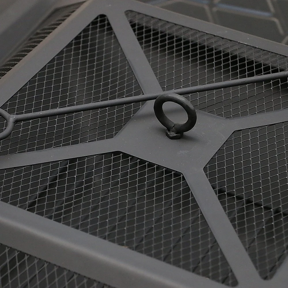 This attractive square fire pit is a must for any backyard or patio. You'll draw a crowd when you throw on mouth-watering steaks and delicious kabobs on this metal fire pit. Your gatherings will be a hit!