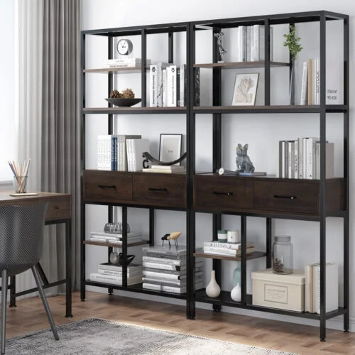 180Cm Tall Bookshelf With Drawers Industrial Bookcase W/ 6 Tiers Storage Shelves