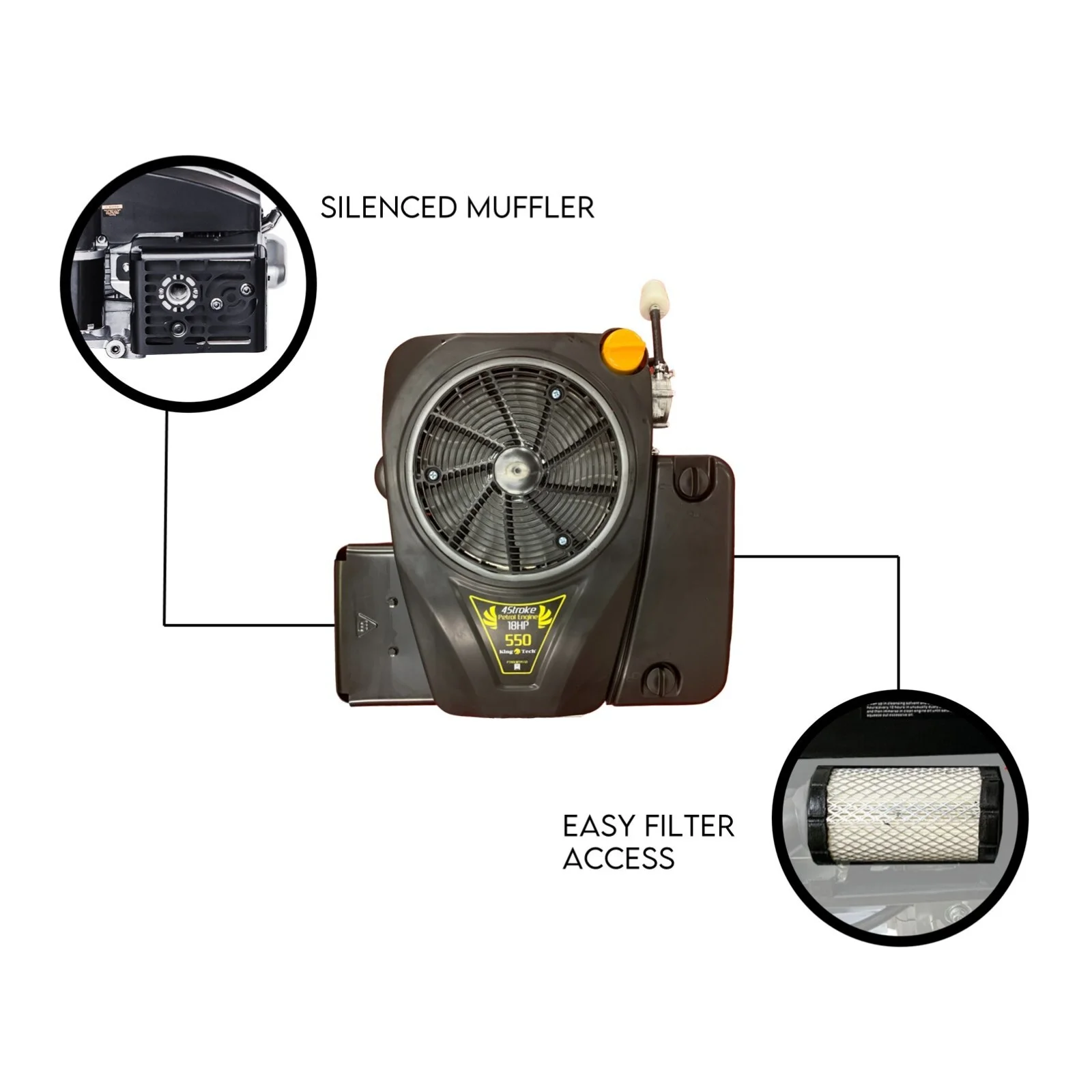 When your mower’s heart gives out, drop in the KingTech 18HP Vertical Shaft Engine and bring it back to life. This 550cc 4-stroke OHV petrol motor packs serious grunt with smooth, dependable power that gets the job done every time. Built for ride-on mowers, this motor slots in where most Briggs and Stratton or Honda mounts sit — no fuss, just fit and fire. Designed for Aussie yards and conditions, it’s got the torque to cut thick grass and the reliability to run season after season. If you want a straight-talking upgrade that just works, KingTech’s got your back.