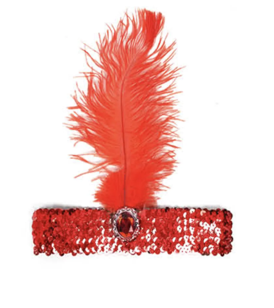 Step back into the roaring twenties with this glamorous flapper headband – perfect for Charleston parties, Great Gatsby nights, or any dress-up event that calls for a splash of vintage flair. Each headpiece is designed with a stretchy sequin band, a jewel detail, and a striking ostrich feather, making them the ultimate finishing touch for your 1920s costume.