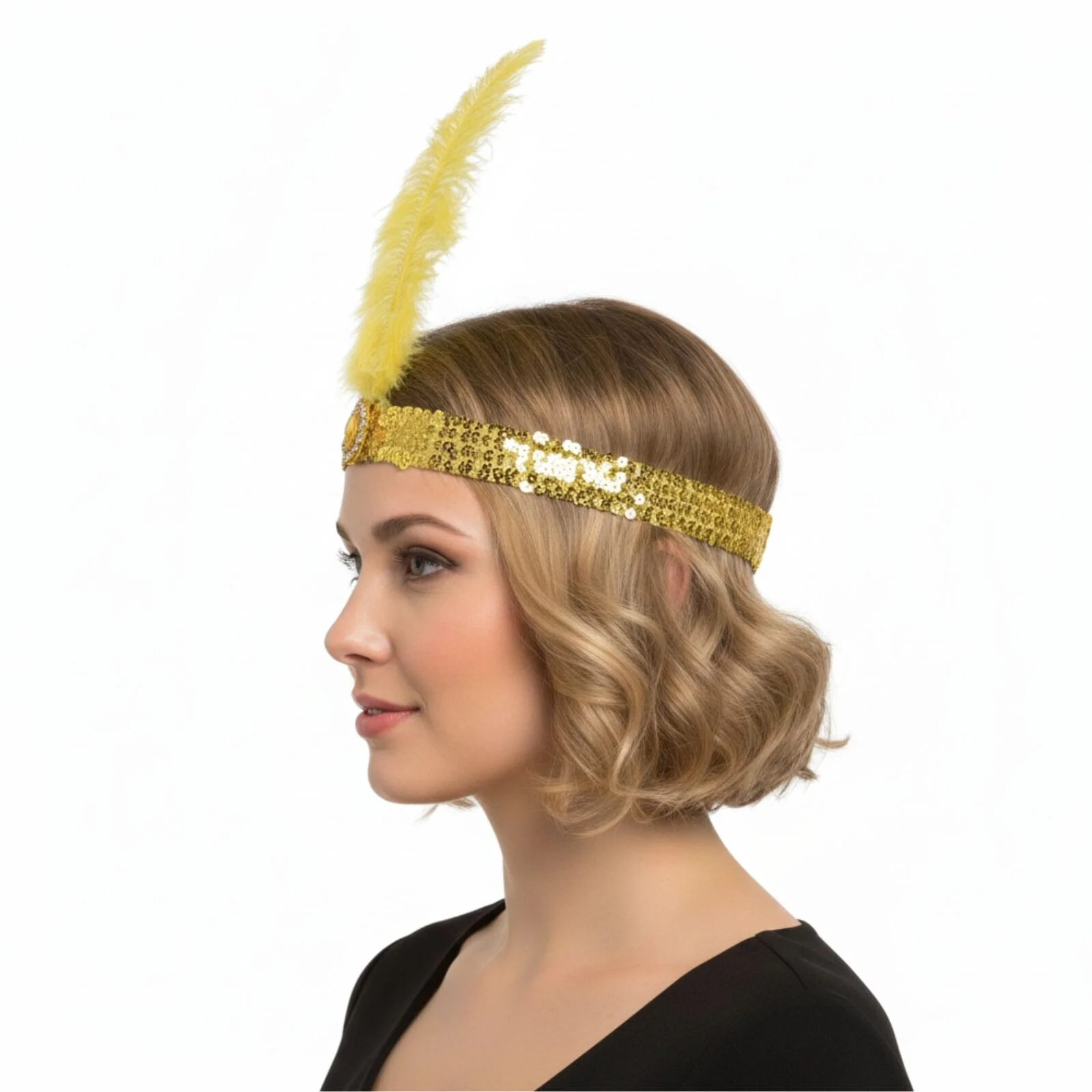 Step back into the roaring twenties with this glamorous flapper headband – perfect for Charleston parties, Great Gatsby nights, or any dress-up event that calls for a splash of vintage flair. Each headpiece is designed with a stretchy sequin band, a jewel detail, and a striking ostrich feather, making them the ultimate finishing touch for your 1920s costume.
