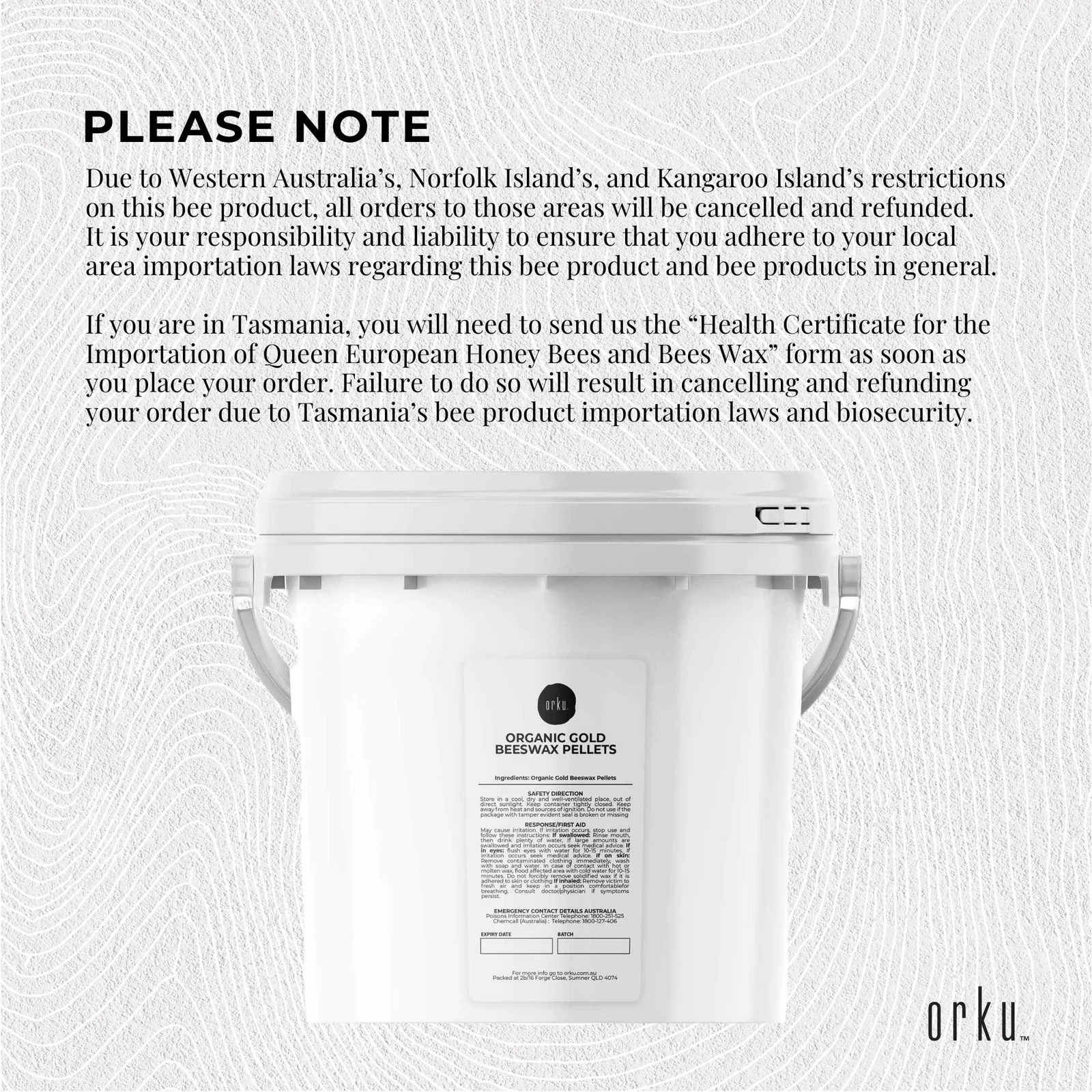 Due to Western Australia’s, Norfolk Island’s, and Kangaroo Island’s restrictions on this bee product, all orders to those areas will be cancelled and refunded.