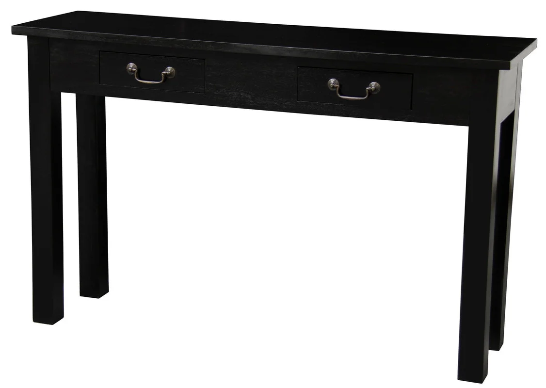 Elevate your entryway or living space with the 2-Drawer Straight-Leg Sofa Table in a timeless black finish. Handcrafted from solid mahogany for strength and natural beauty, it features a slim, modern silhouette with straight legs and polished solid-brass handles. At 120 35 76 cm, the surface is ideal for styling lamps, art, or daily essentials, while two smooth-glide drawers keep small items neatly out of sight. Minimal assembly makes setup quick and easy.
