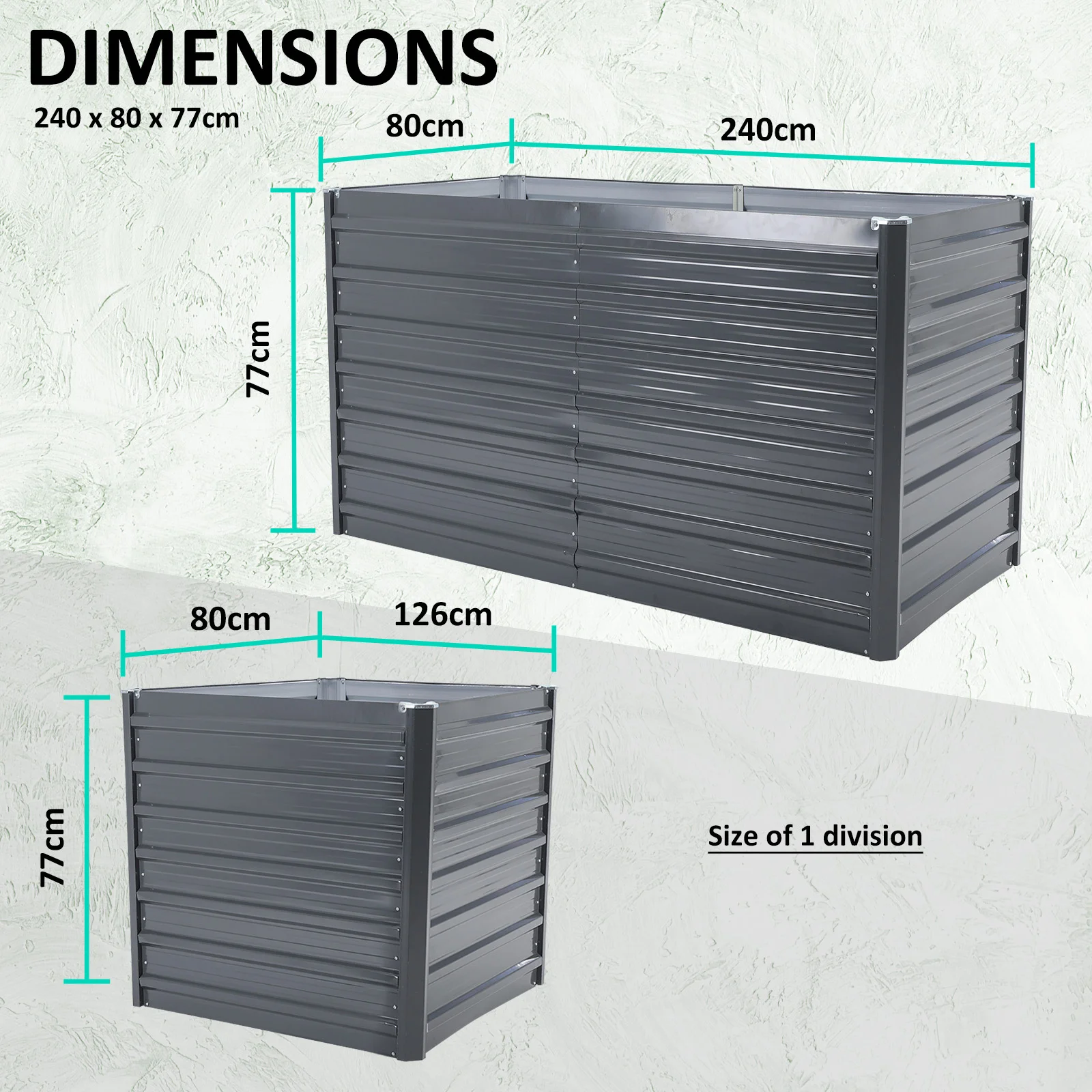 Home Ready 2-in-1 Raised Garden Bed Galvanised Steel Planter Grow Veggie Plant Flowers 240 x 80 x 77cm - Grey