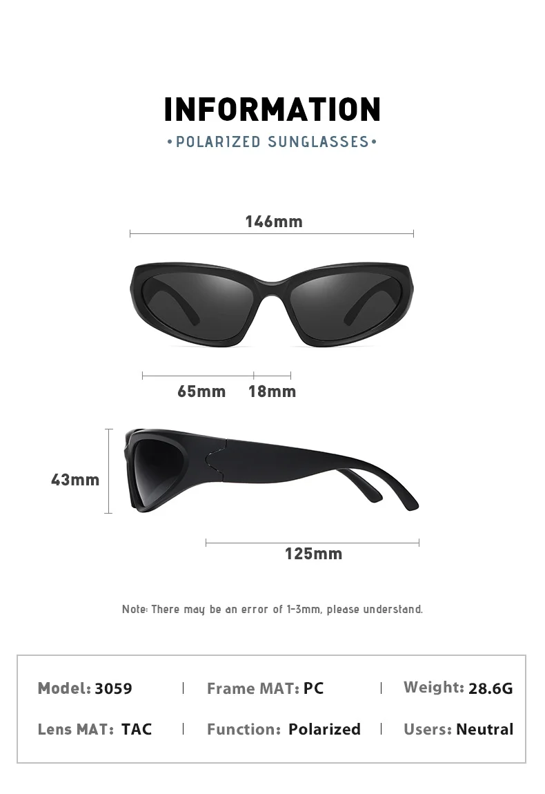 These polarized sports sunglasses are built to keep up with your active lifestyle. The aerodynamic shape and small frame profile are specifically designed to fit well under bike helmets or caps, reducing bulk while maximizing coverage. The dark lenses provide excellent protection against bright sunlight, while the polarization technology helps to enhance contrast and reduce eye strain, which is essential when driving or participating in outdoor sports.