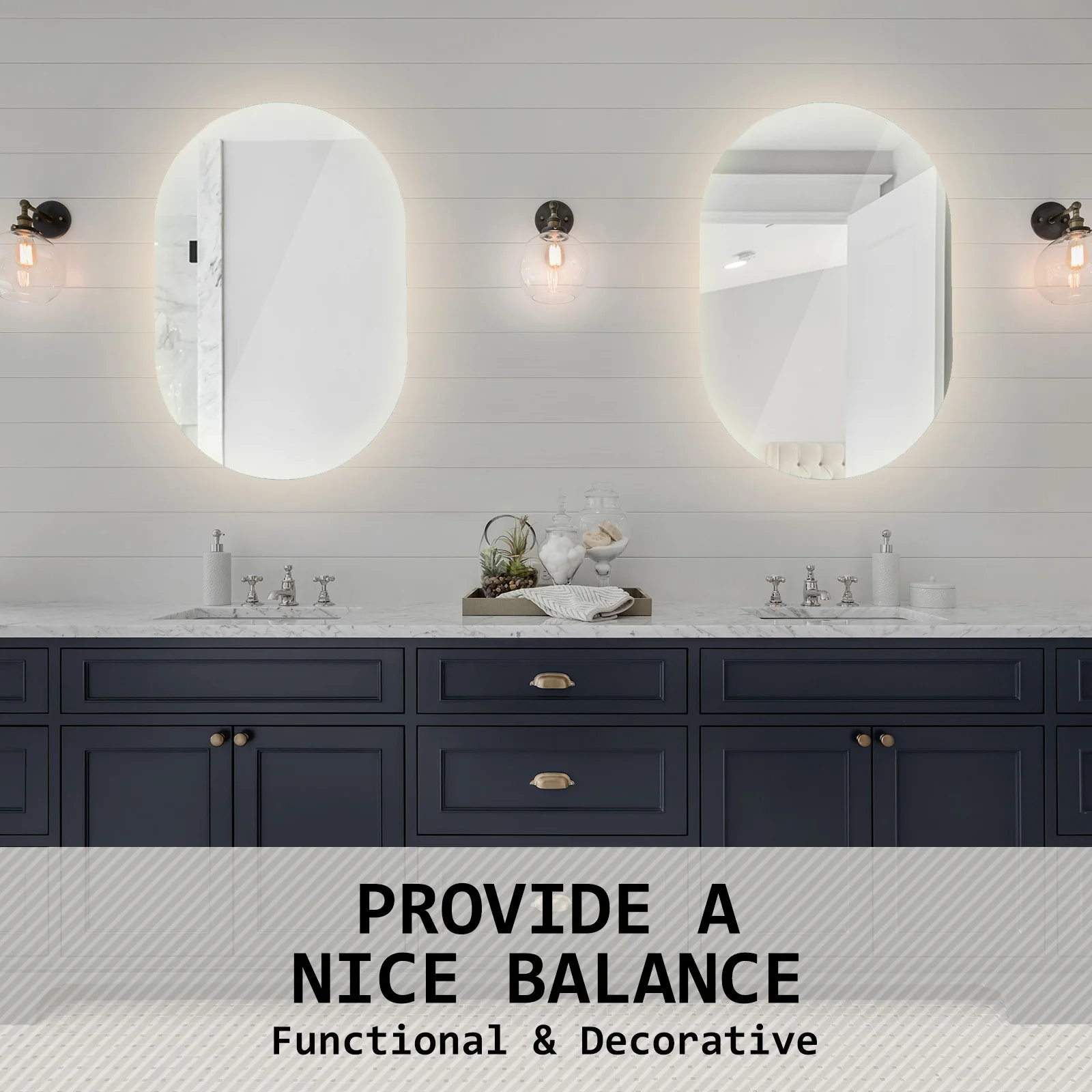 The LED oval mirror is sleek and frameless in design comes with an energy-efficient LED light strip place around the back of the mirror. This illuminated mirror besides saving more energy and cost than light bulbs, but also has a long-lasting lifespan of up to 50,000 hours. Not to mention it combines dual-channel LEDs greatly affect aesthetics and ambience. You can adjust its colour temperature range from a mix of warm yellow and cool white LEDs and cross-dim between the two with a simple long touch.