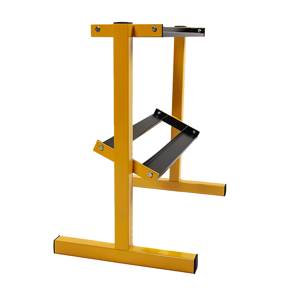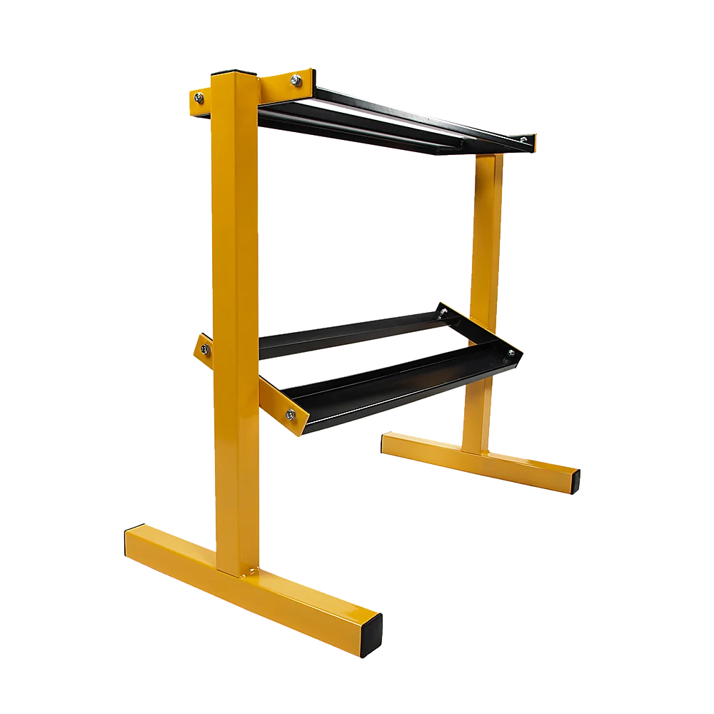 Its 50mm upturn makes it the perfect storage solution for weights 10kg and up. With its sturdy steel frame, it can support up to 400 pounds, so long as the weights are distributed evenly. To protect your floor from dents from all that weight, the rack features rubber feet to protect your floor and prevent slippage. Don't miss out on your chance to organise your workout room with this convenient weight storage rack. Get yours today!