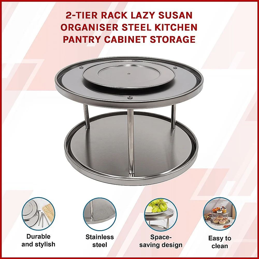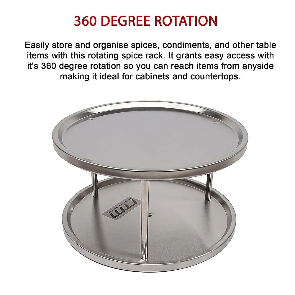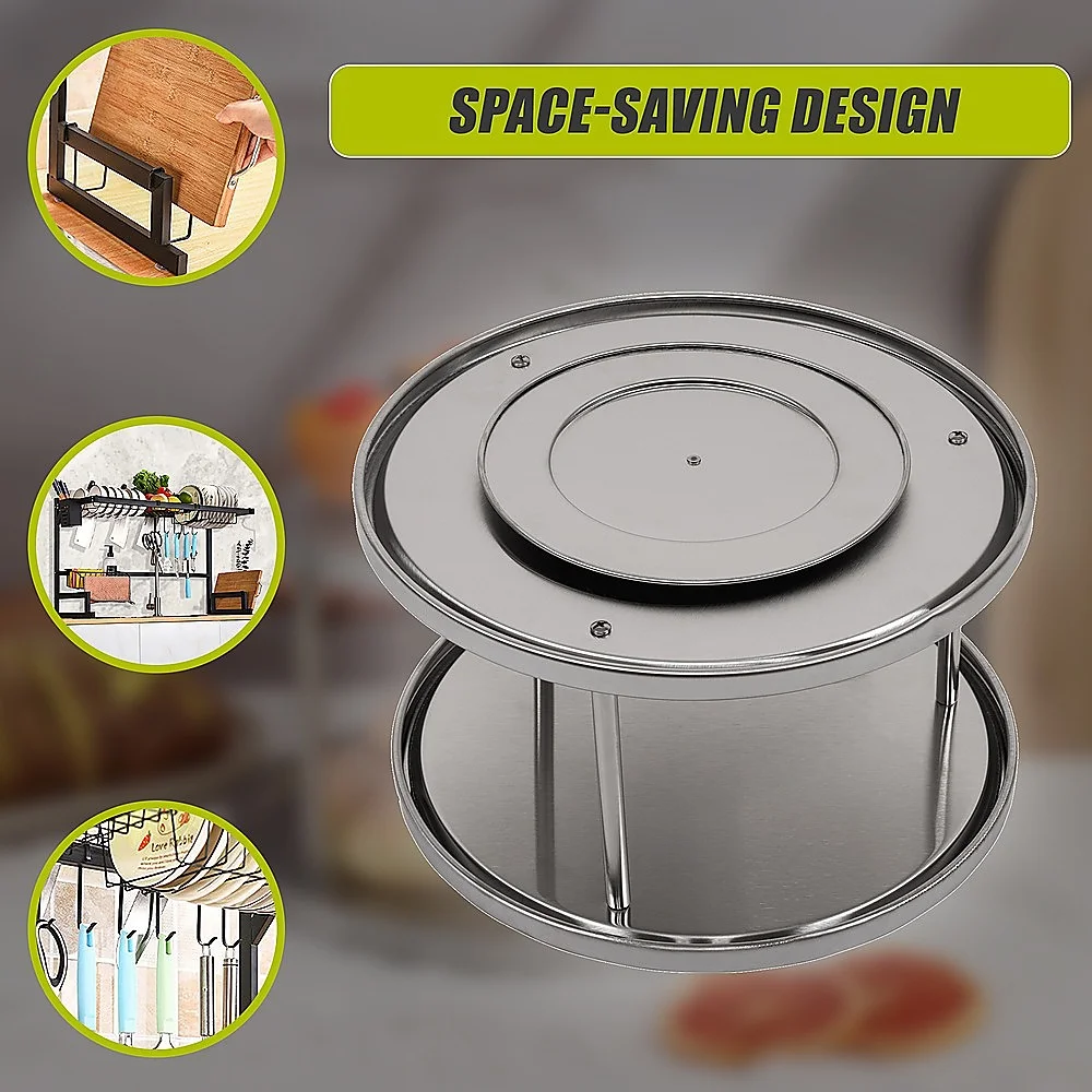 Optimise your kitchen organization with the 2-Tier Rack Lazy Susan Organiser by Randy Travis Machinery. Made from stainless steel, this durable and stylish organiser is perfect for keeping your kitchen pantry and cabinets neat and tidy. This 2-tier rack is solid and sturdy, ensuring long-lasting durability.
