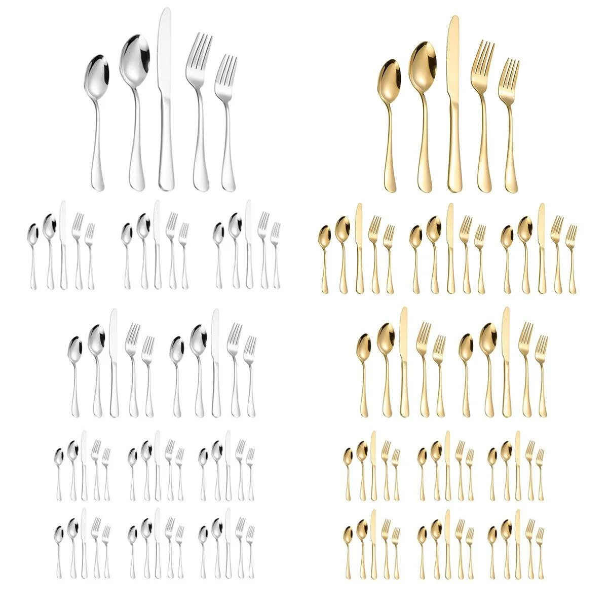 Option 1: 20-piece set (4 knives, 4 forks, 4 dessert forks, 4 spoons, 4 dessert spoons)