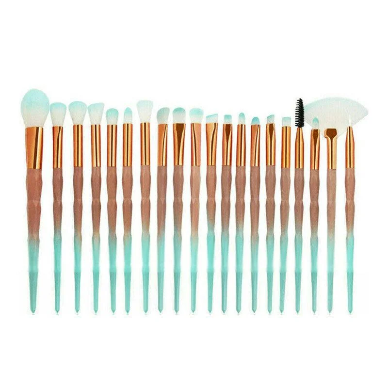 20 Pcs Eye Make-Up Brushes Diamond Unicorn Eyeshadow Eyebrow Blending Brush Set - Transparent