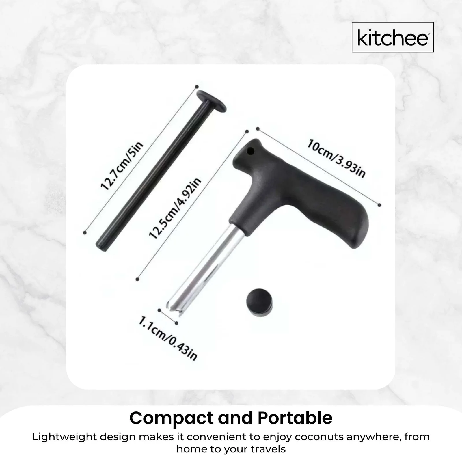 Its compact, lightweight design and sturdy handle offer portability and stability for easy coconut opening anywhere, without mess.