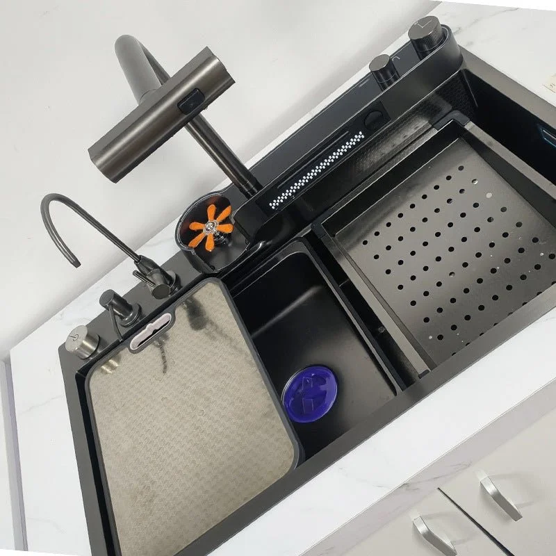 1.Our waterfall kitchen sink is made of high-quality 304 stainless steel. The faucet is retractable. The inside of the sink is oil-proof and high temperature resistance