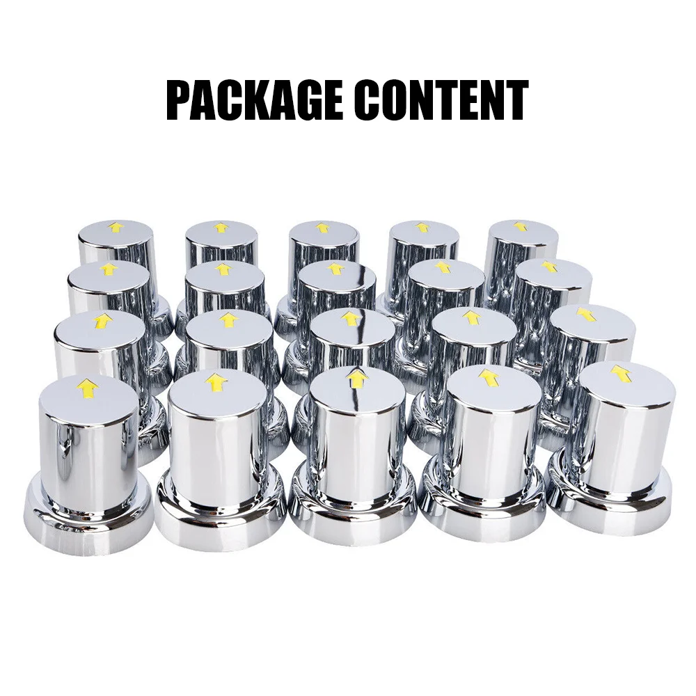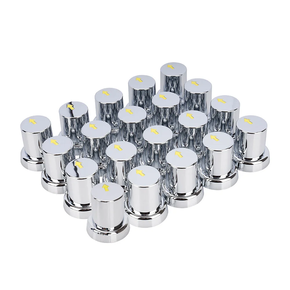 Abs Chrome Plastic Directional Nut Cover With An Indented Yellow Arrow Safety Indicator.