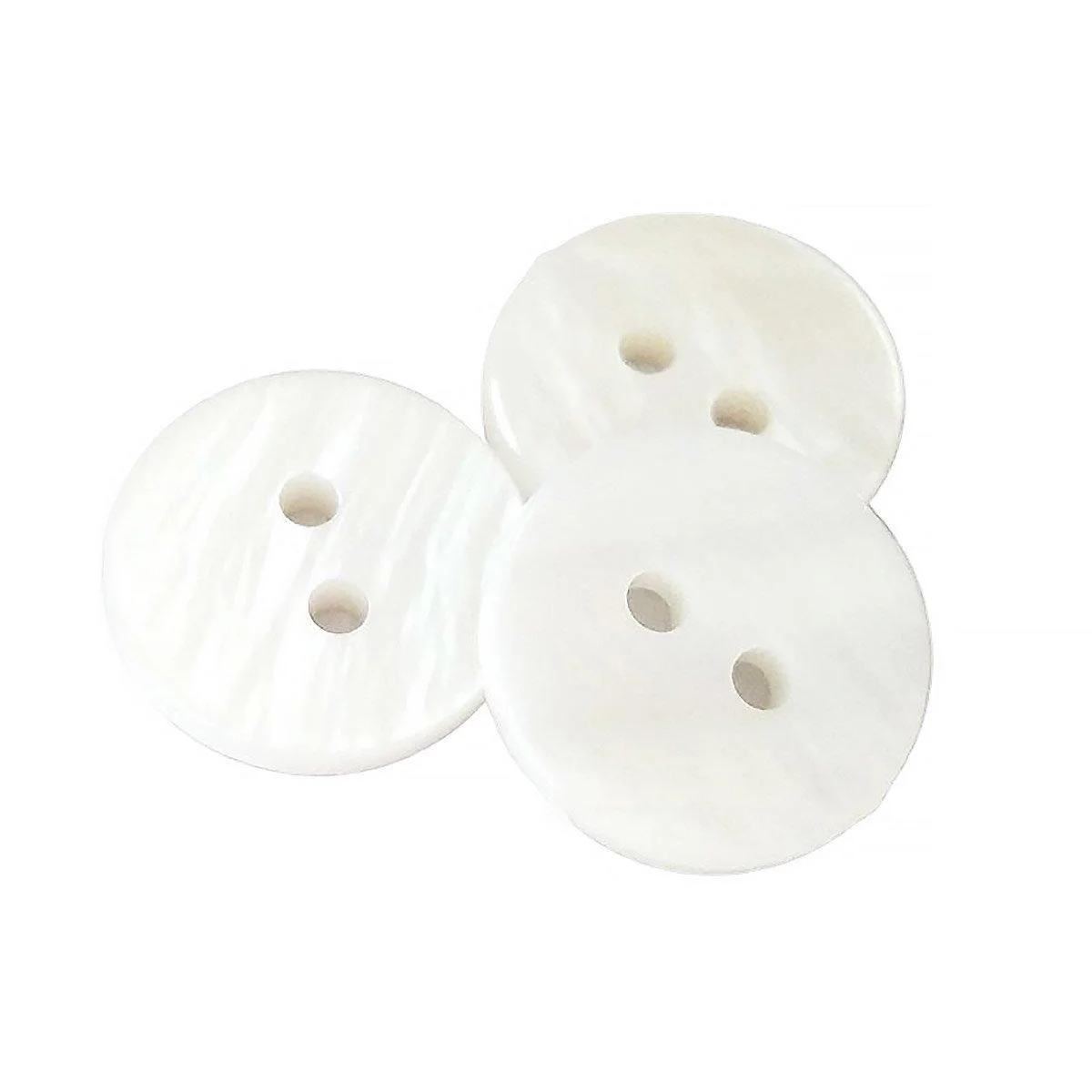 Enhance your shirts with these premium quality natural shell buttons, perfect for adding a touch of elegance to any garment. These round, white buttons feature two eyelets for secure attachment and are available in various sizes, ensuring they fit a wide range of shirt styles. Their smooth, lustrous surface reflects light beautifully, giving your clothing a subtle, sophisticated sheen. Ideal for both casual and formal shirts, these buttons are a must-have for anyone looking to elevate their wardrobe.