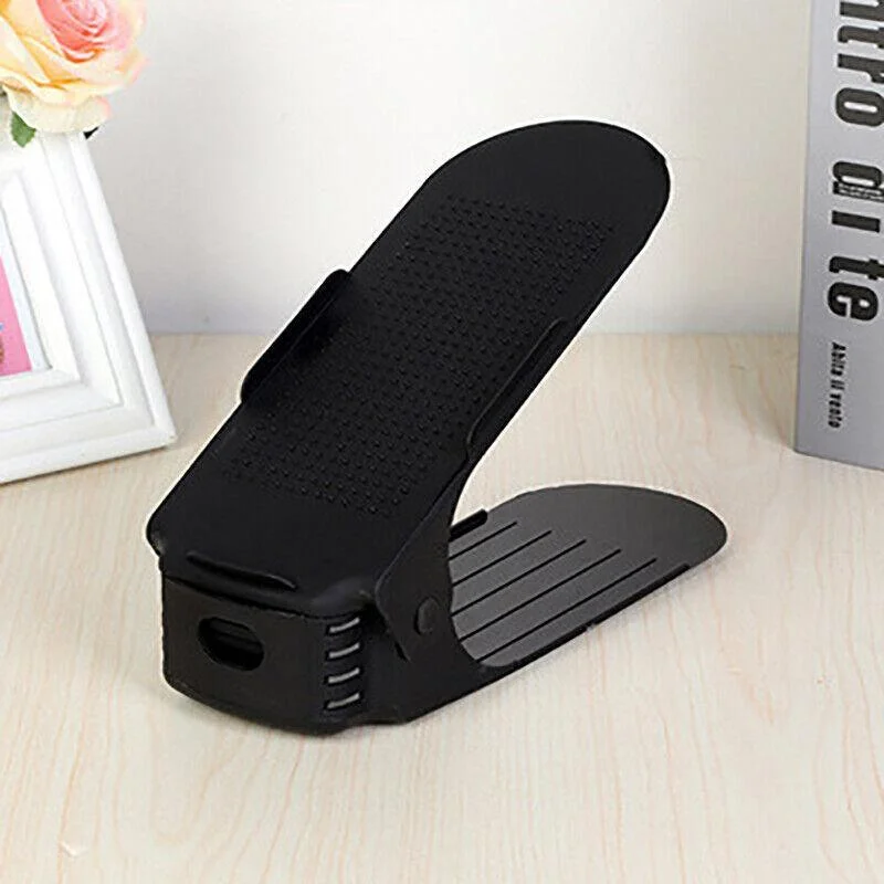 -COOL DESIGN-Great grip for your shoe sole due to the non-slip surface. The ADJUSTABLE SHOE ORGANIZERS are made from durable high quality ABS plastic which does not break easily under pressure. With a smart 3-level adjustment feature, these slots are perfect for all types of shoes, from flats, sneakers, sandals, and slippers to stilettos, high heels, or shoes for little ones.