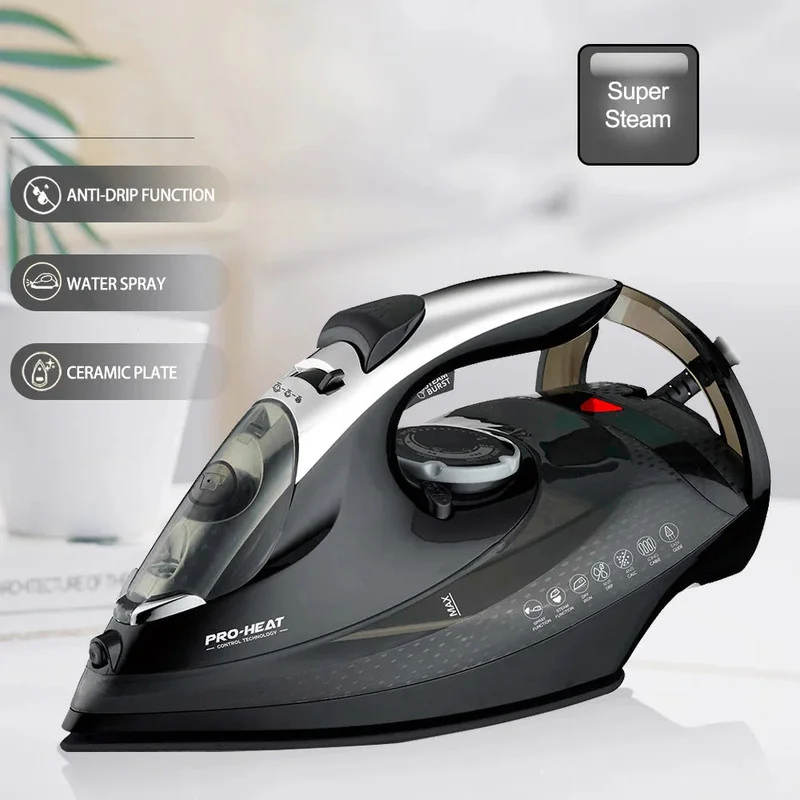 Effortlessly achieve wrinkle-free clothes with the NNEOBA 2200W Professional Steam Iron. Featuring a ceramic soleplate and rapid heating, this iron delivers powerful steam to make ironing quick and efficient.