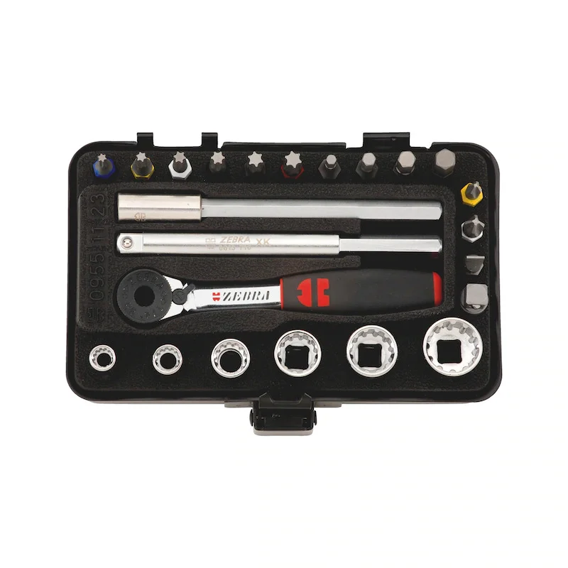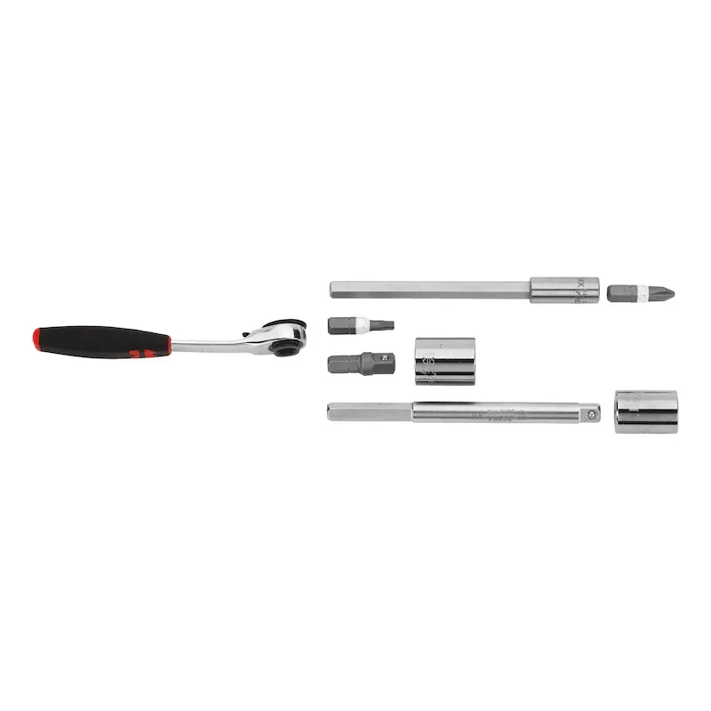 - The combination of very compact, flat and angled ratchets and the extensions make it possible to access even screws in tight and hard-to-reach places
