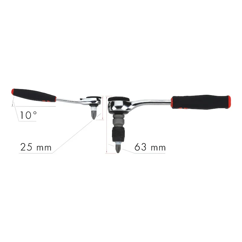 - The very slim reversible ratchet with its compact, angled head has an ergonomic, robust plastic handle for comfortable and safe working