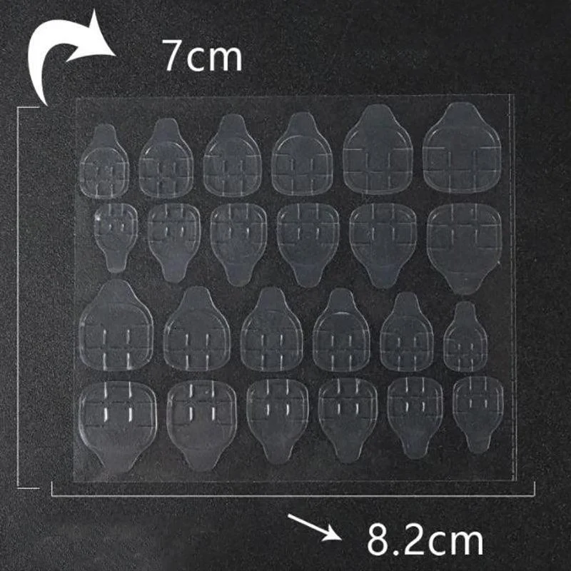 Unlock the secret to flawless, salon-quality nails with our Double-Sided Adhesive Press-On Nail Stickers! Perfect for nail enthusiasts seeking a long-lasting, hassle-free nail beautification solution, these transparent glue tabs offer a secure and seamless way to adorn your nails. Each pack comes with an impressive range of 24 to 2400 pieces, ensuring you have plenty for countless nail art creations. From elegant French tips to vibrant designs, achieve your desired look effortlessly. Our nail stickers are incredibly easy to apply, skin-friendly, and ensure no damage to your natural nails upon removal. Dive into endless possibilities and transform your nail game with our versatile adhesive stickers.