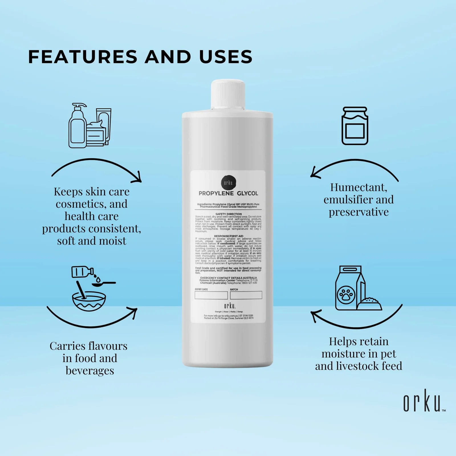 It is a clear liquid used as a non-active ingredient in the manufacturing of pharmaceutical products. It is also used as a humectant and emulsifier in the production of food, personal hygiene and skin car products and liquid detergents.