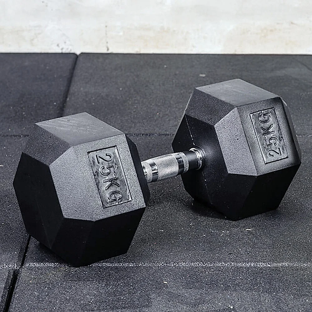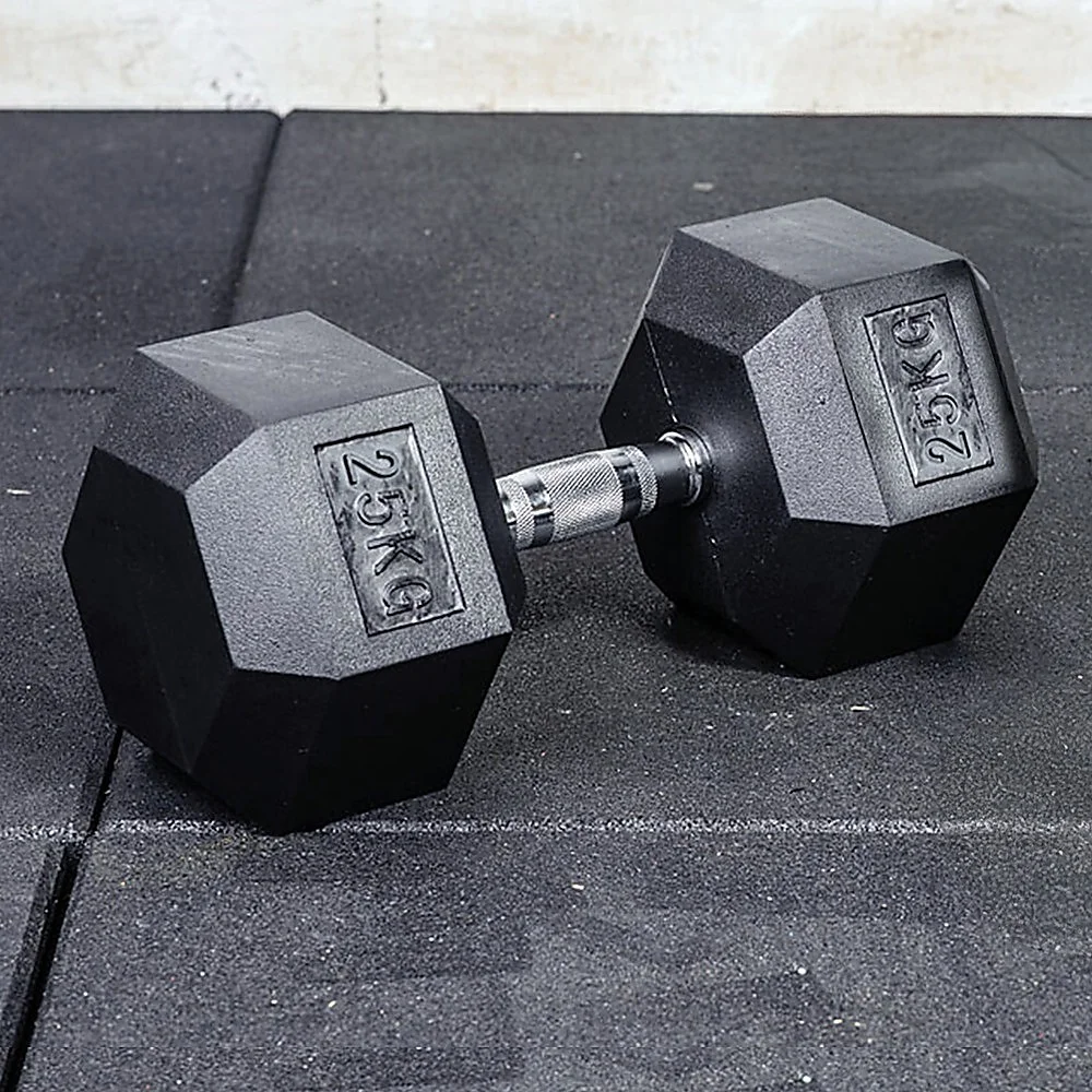 Take your workout to a new level with our commercial rubber hex 25kg dumbbell