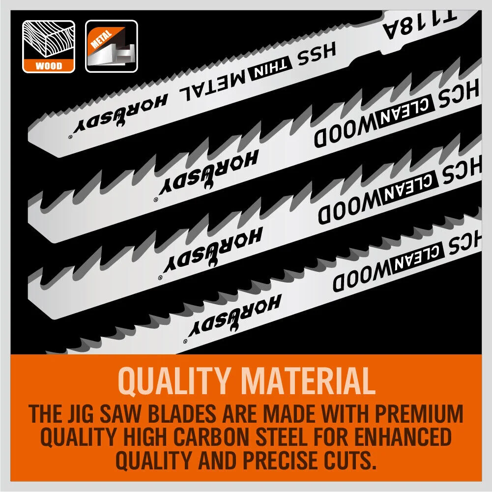 [Wood and Metal ]: 25-Piece Set includes (T101B / T101A0 / T144D) blades for wood, straight and very fast cuts. (T118A / T118B ) blades for Thin Sheet Metal Steel, Aluminum and fast cuts. (T123XF / T345XF ) blades for heavy-duty cuts in hardwoods and metal.