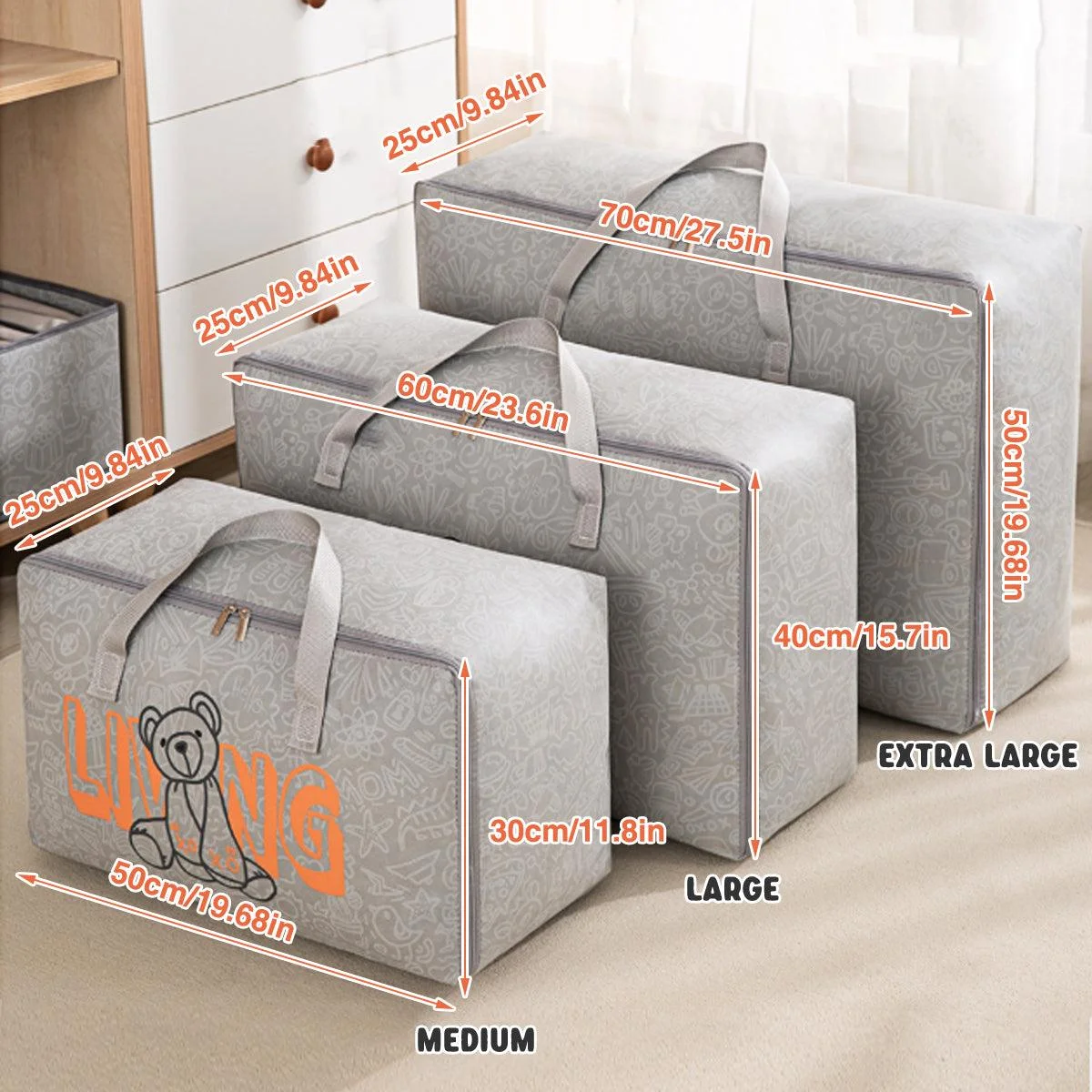 Keep your belongings neatly organized and easy to transport with these high-quality, waterproof storage bags. Ideal for storing clothes, bedding, and other household items during seasonal changes, moves, or travel, these durable bags are crafted from thickened non-woven fabric. Waterproof, moisture-proof, and wear-resistant, they offer long-lasting protection for your items. With reinforced handles and sturdy zippers, these bags are built to withstand heavy-duty use while keeping your belongings safe and secure. Available in Grey and White, they feature a minimalist design that fits any space.