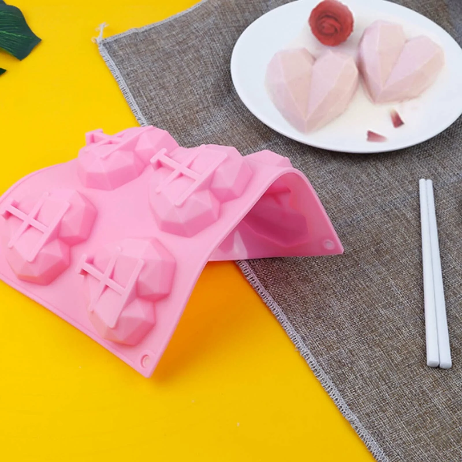 Flexible and Non-Stick:DIY 3D Diamond heart Mold Size : 8.70x6.69x0.87in, Inner heart size: 2.56x2.17x0.87in. Silicone mousse mold is very soft and flexible.No matter how twisted and squeezed, it would be as well as new.