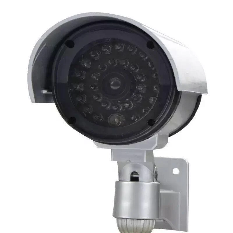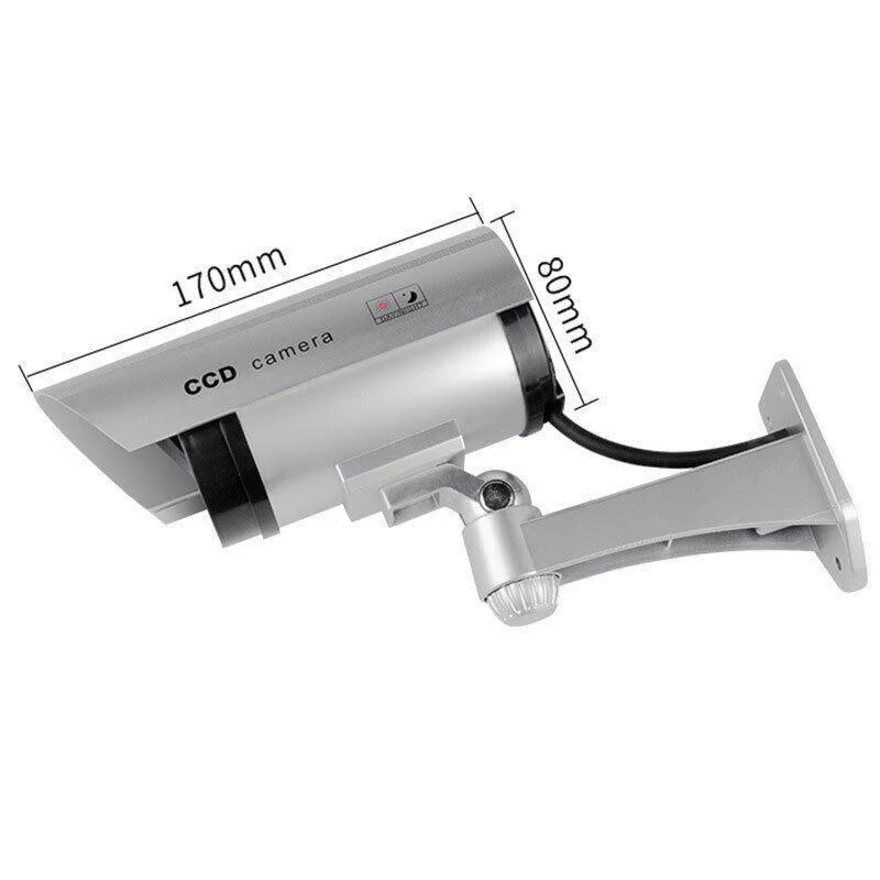 Realistic dummy CCTV camera with LED light to simulate active surveillance