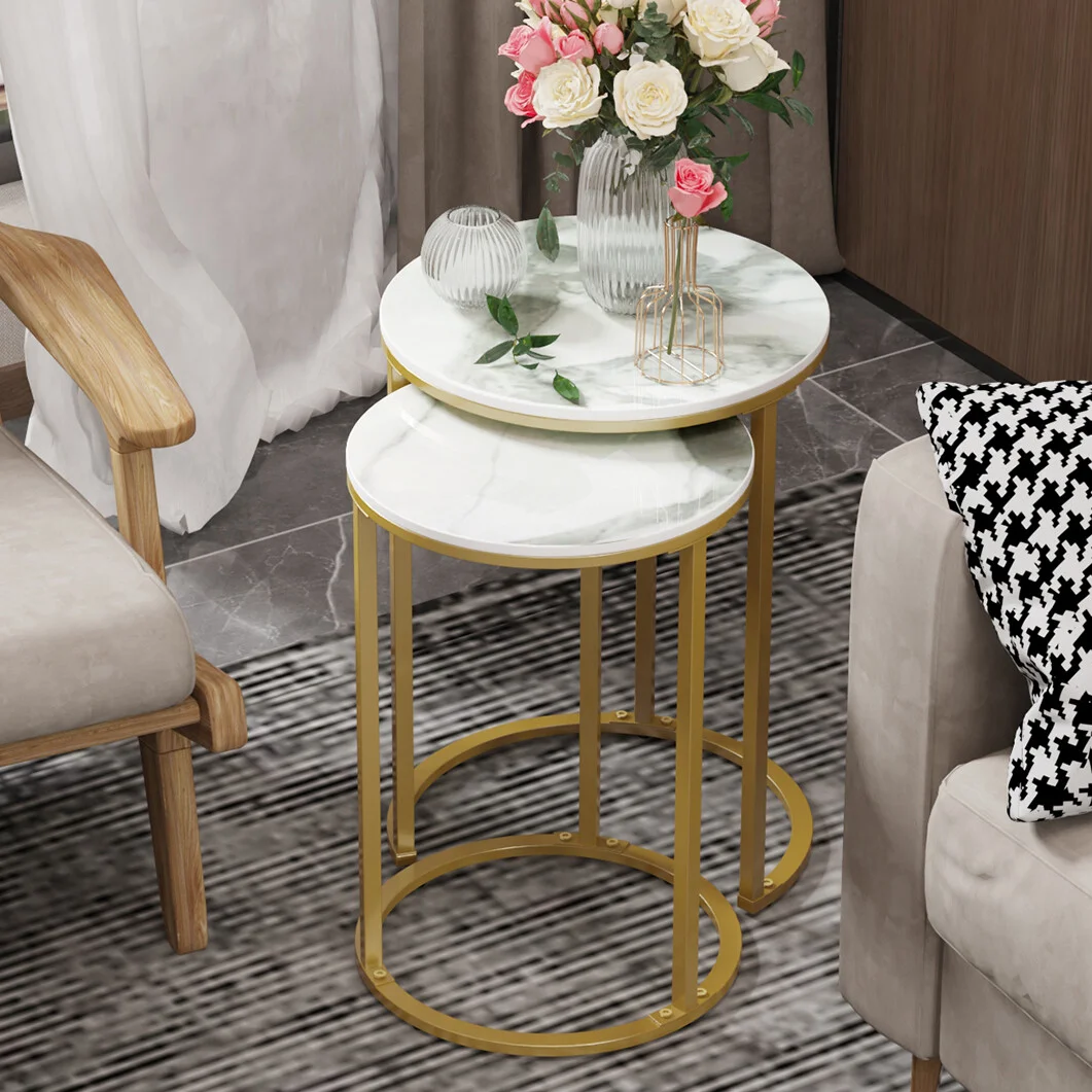 2Pcs Gold Marble Nesting Side End Tables Round Small Stacking Drink Coffee Table