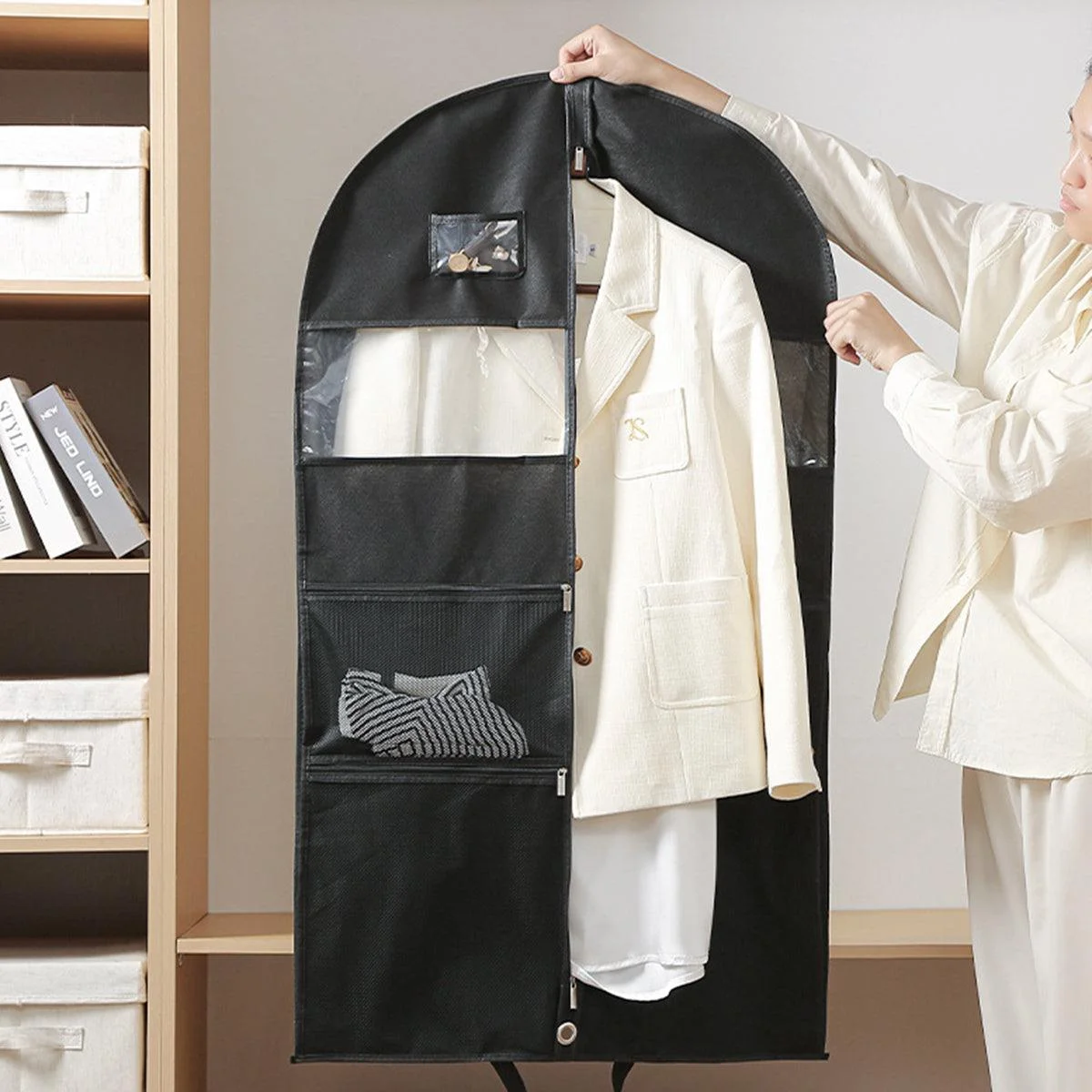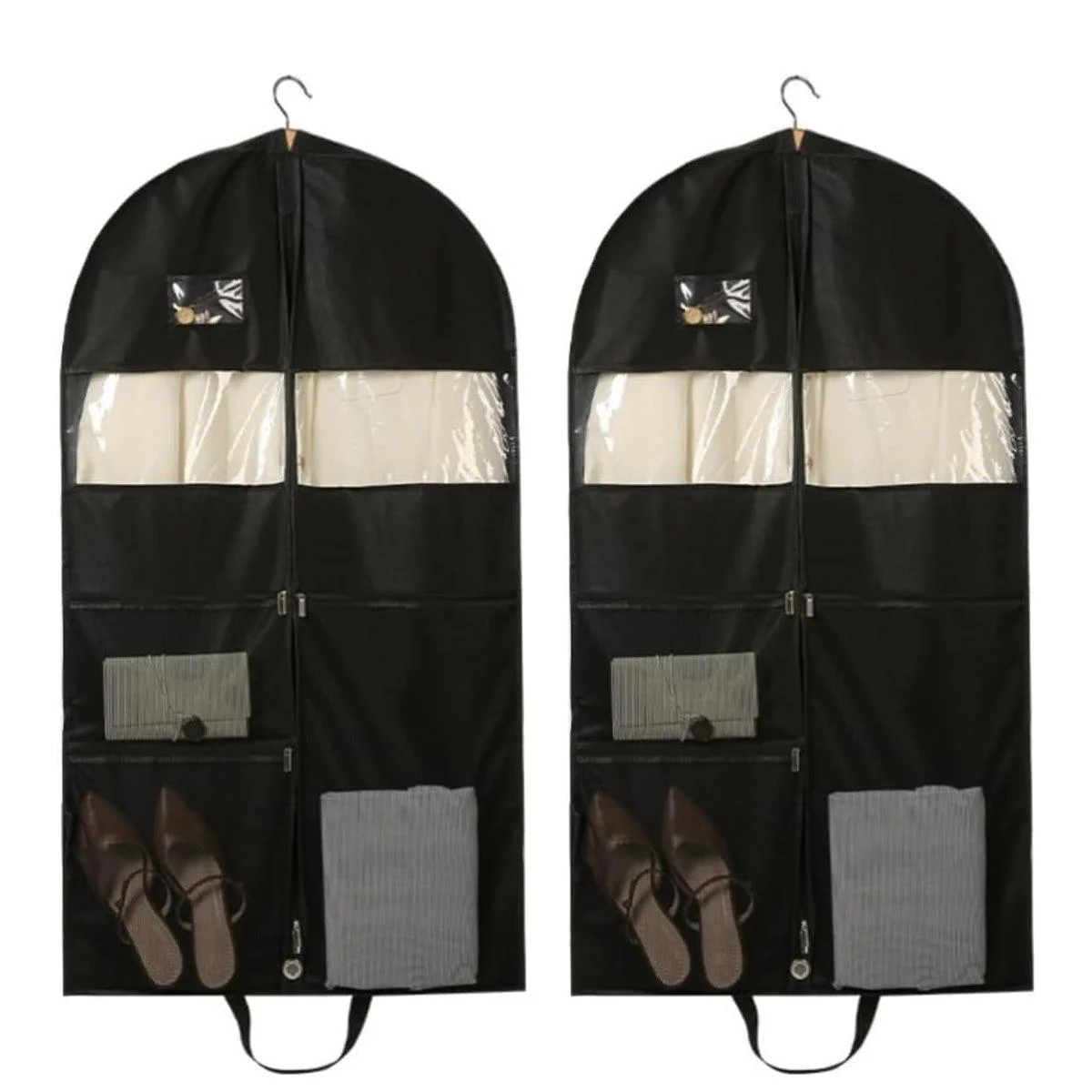 Protect your clothes and keep your wardrobe tidy with this set of durable dust covers. Crafted from thickened non-woven fabric, these storage bags shield your garments from dust, moisture, and insects. Featuring a clear window for quick identification, a secure metal zipper, and additional storage compartments, they are perfect for organising suits, dresses, coats, and more. The foldable design and bottom hook hole make them easy to store or carry, making them ideal for home use or travel.