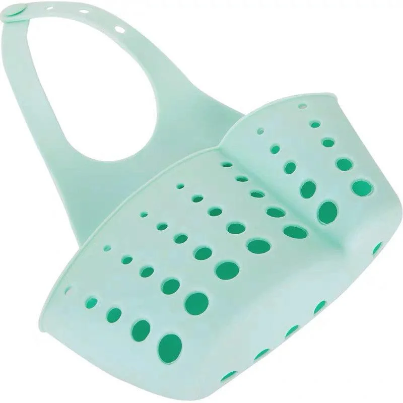 Adjustable strap hangs sink caddy from kitchen sink faucet and fits most standard faucets.
