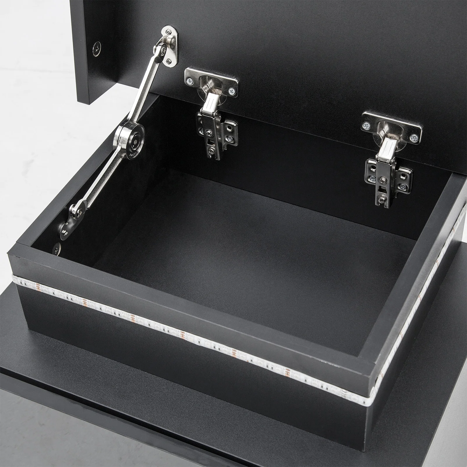Finish: UV High Gloss coating on front surface of the lift-up secret compartment and drawers