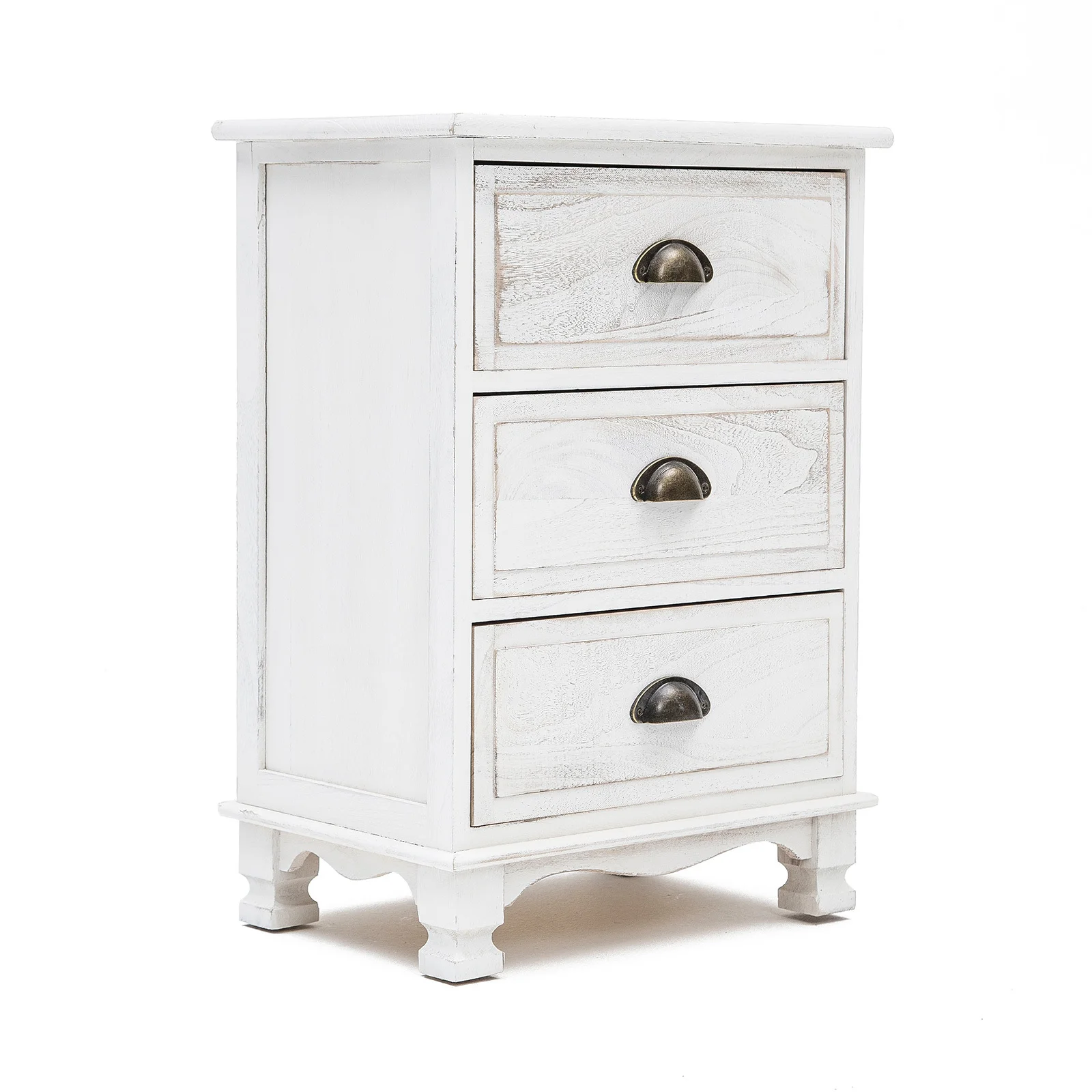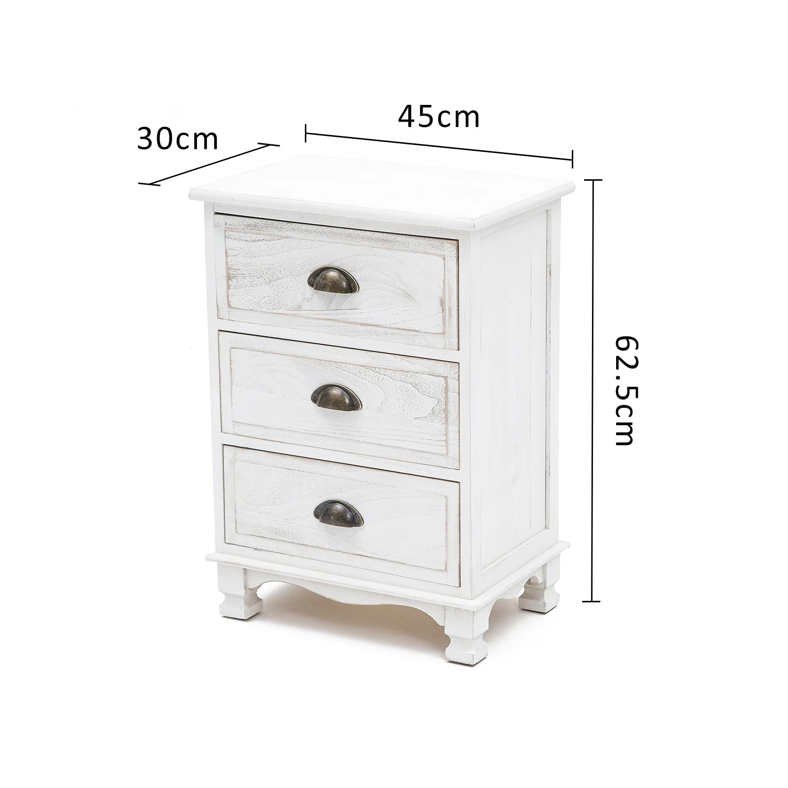La Bella 2 Set Bedside Table 3 Drawer Vintage Side Table Storage Cabinet Bedroom CLARA - White