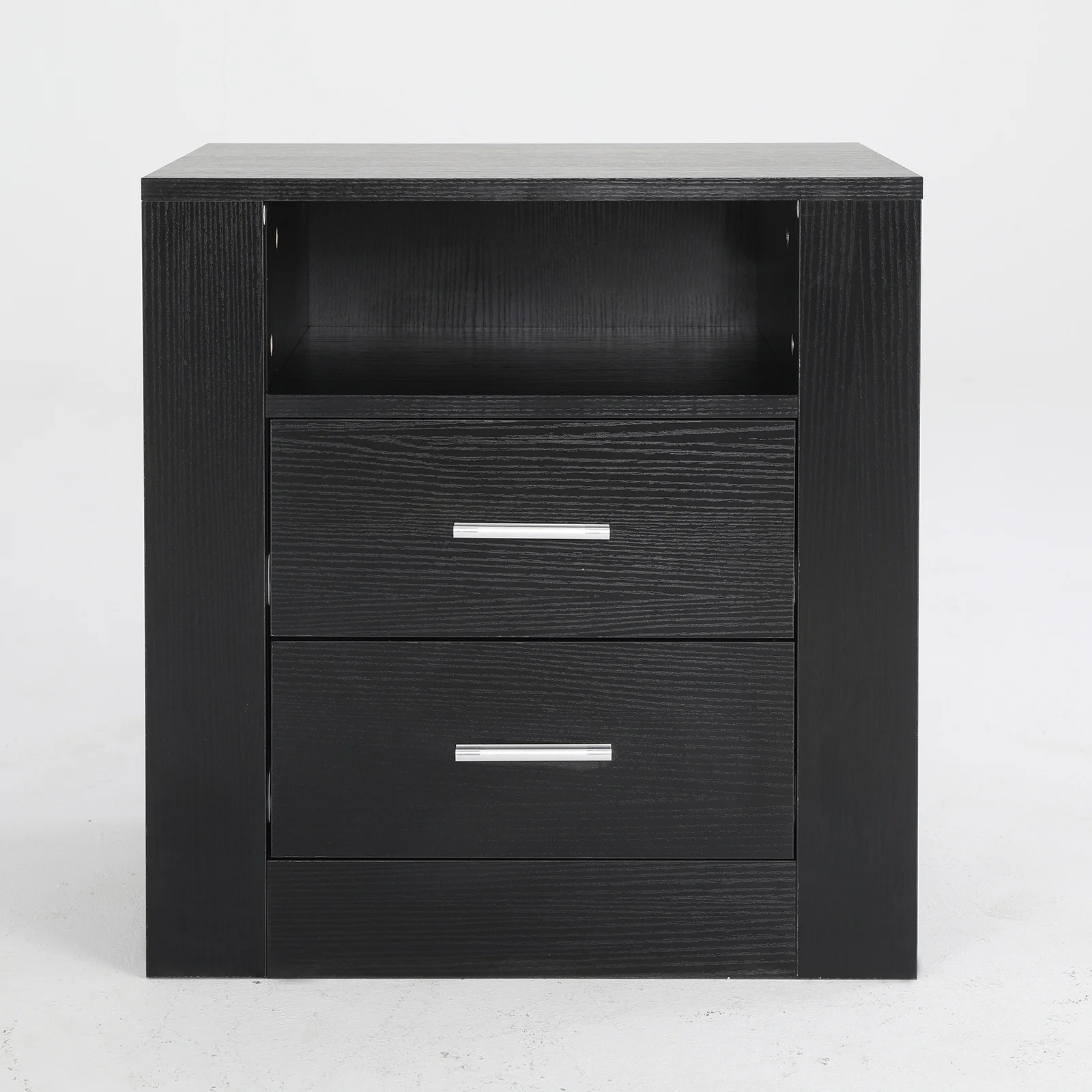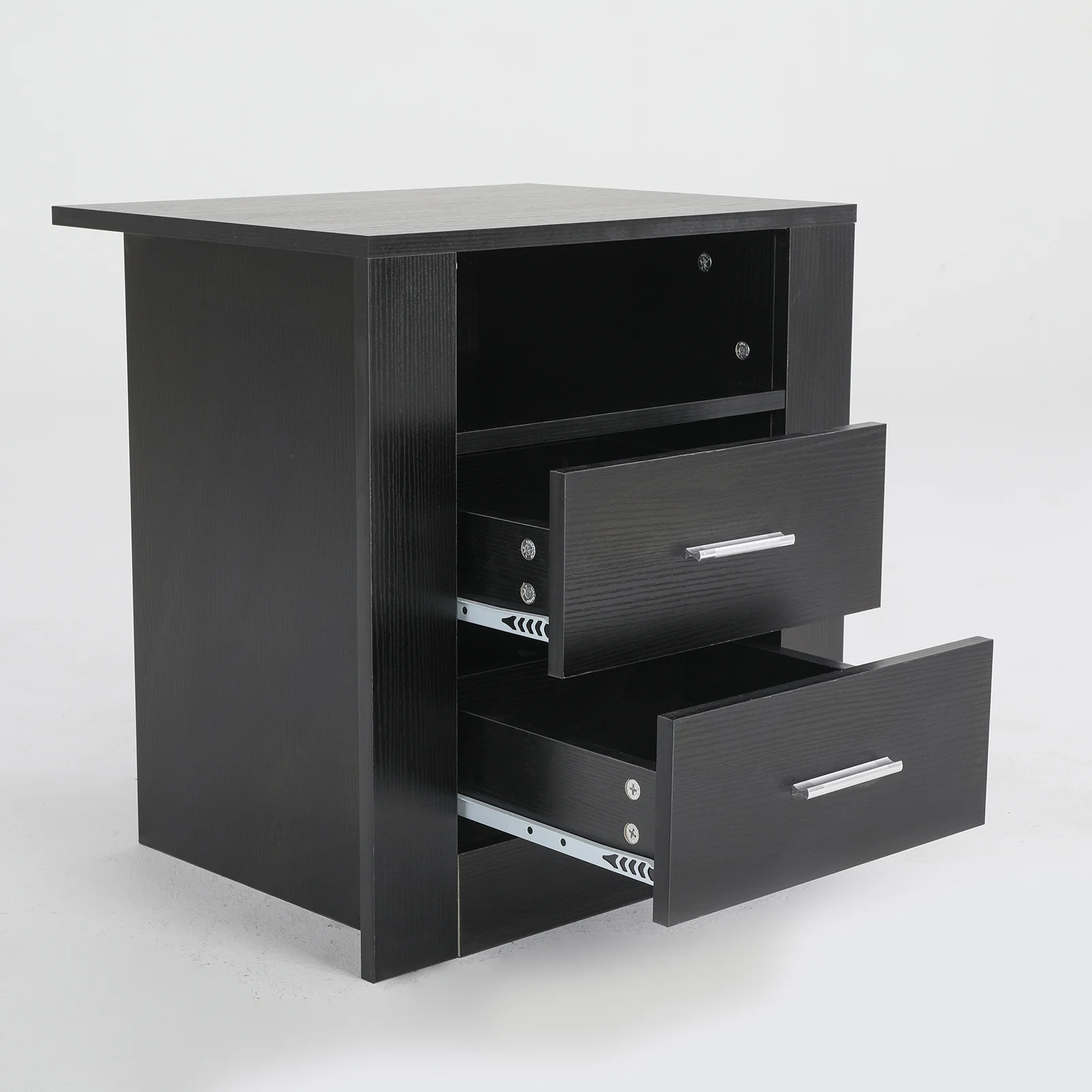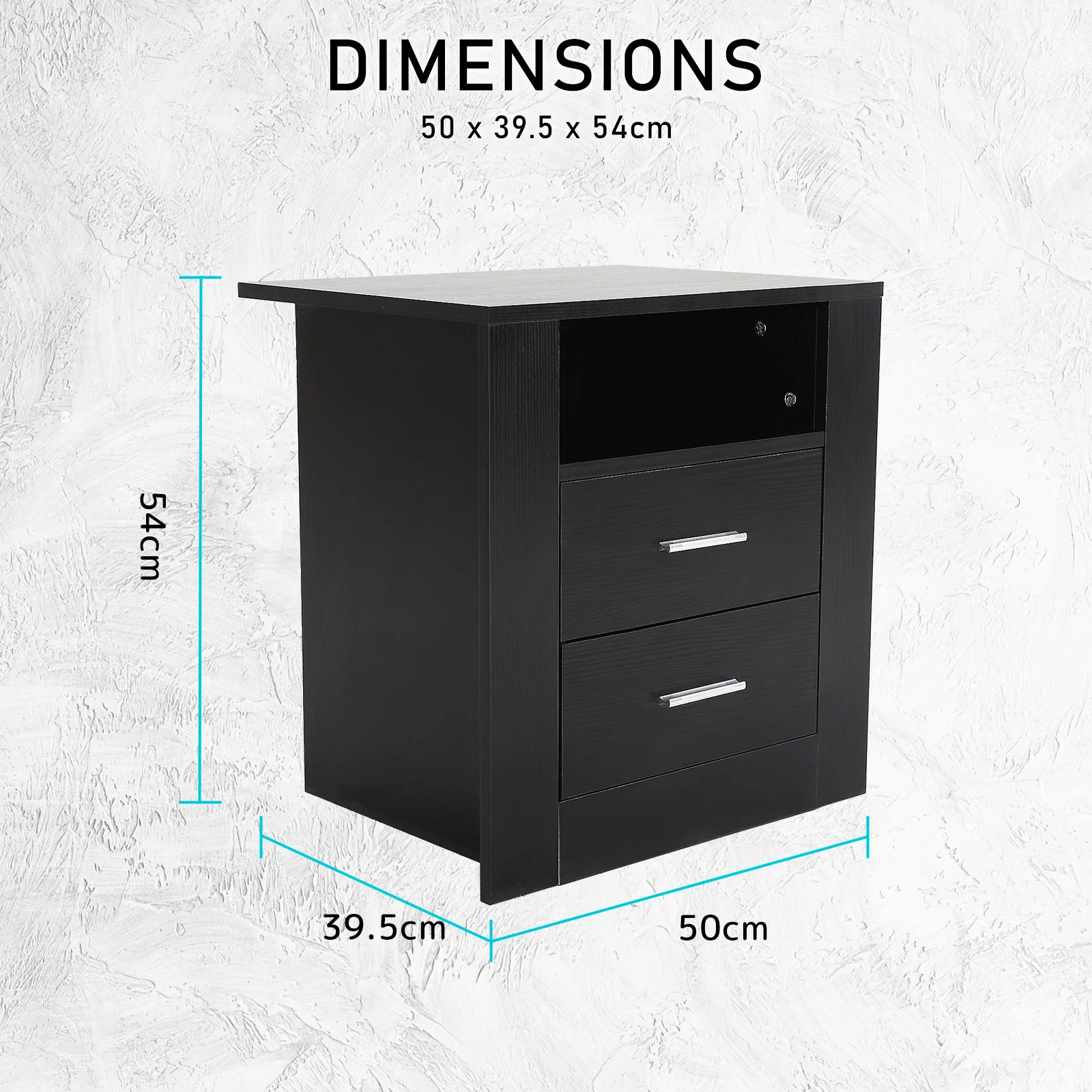 La Bella 2 Set Bedside Table Side Storage Cabinet Nightstand Bedroom 2 Drawer 1 Shelf ZURI - Black