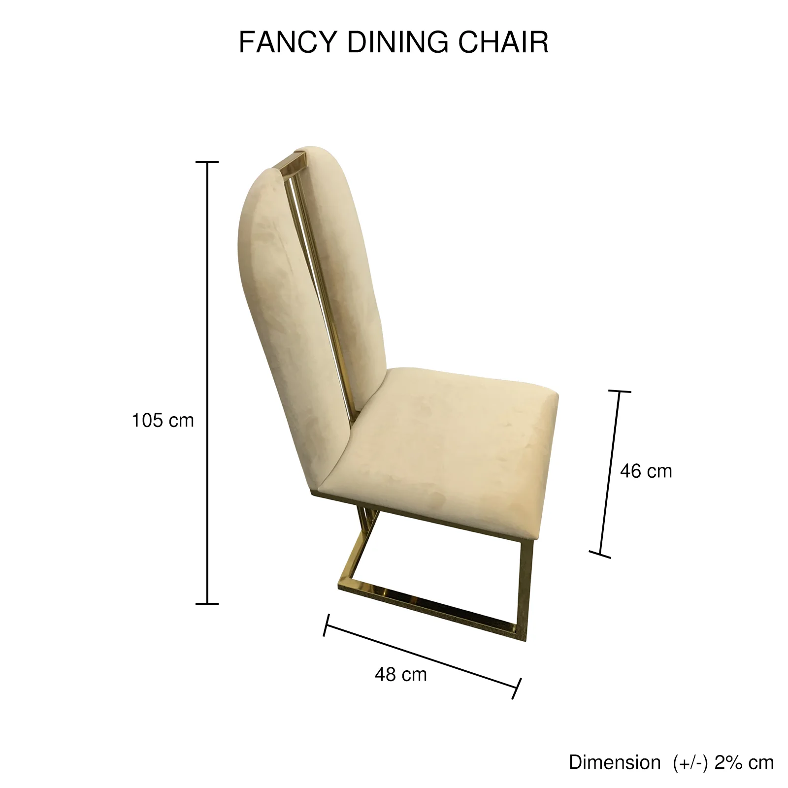 The base of our Fancy dining chair is in Titanium Gold colour. It is finished by stainless electroplating. This provides a durable and stain-free finish. Its gorgeous bench shaped leg makes it an attractive addition to any dining room.