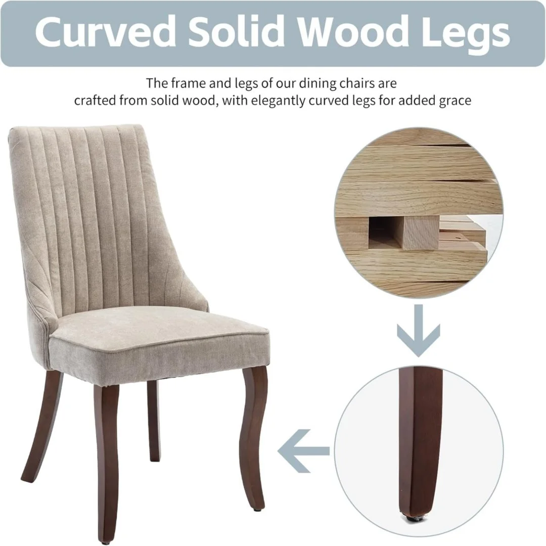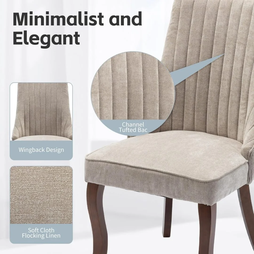 Comfortable Padded Kitchen Chairs: Upholstered in soft, skin-friendly linen fabric and filled with high-density foam, our fabric dining chairs provide a truly comfortable seating experience. The wide cushion and ergonomically curved high backrest offer ample support, making every meal or gathering more enjoyable.