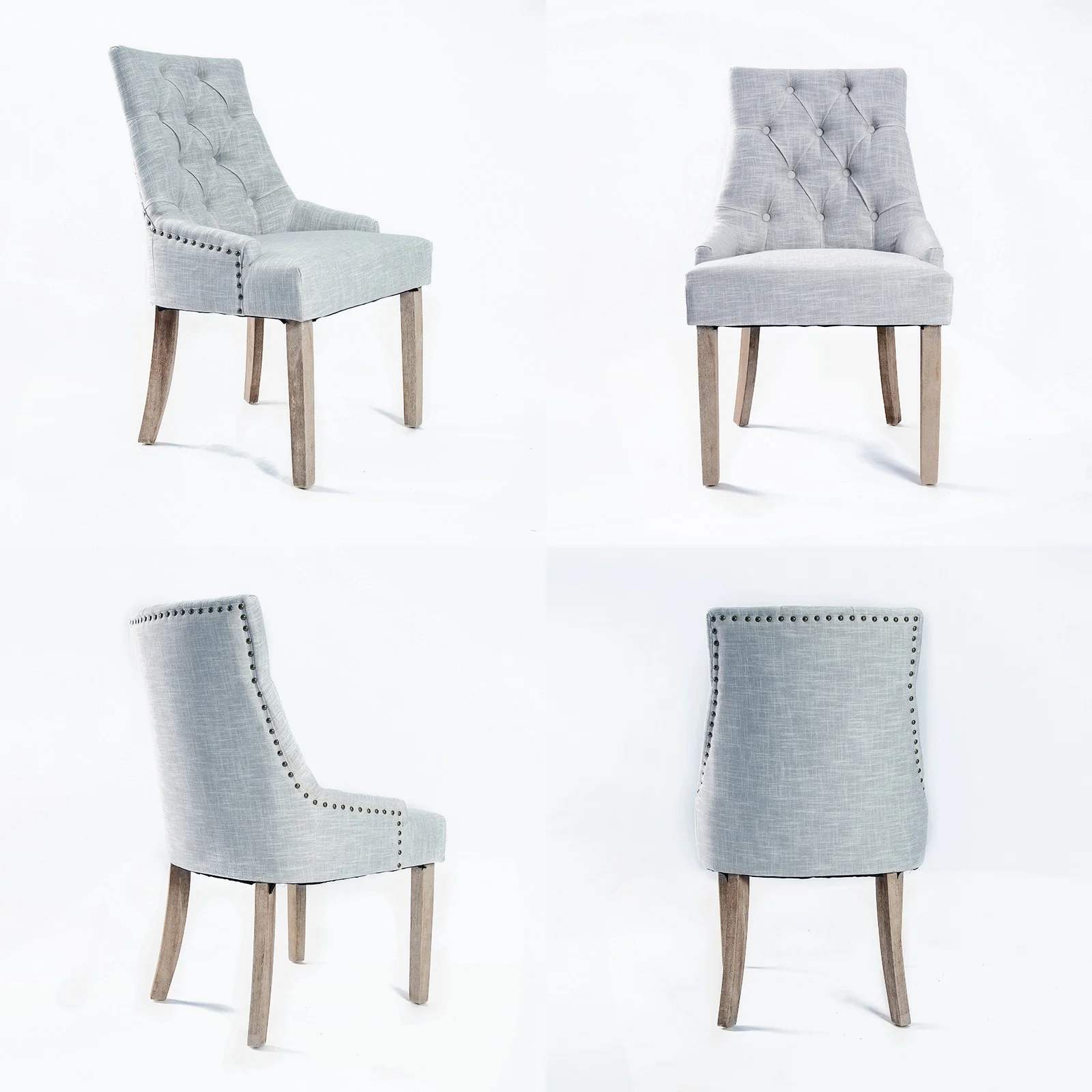 Padded with 13cm high resilience foam, this thick cushioned seat is wider than normal chairs. All these features will no doubt give top maximum comfort. Elegant upholstered, together with a deep tufting design and brass studding on edges, this French provincial style chair will definitely give you and your family and friends additional enjoyment, comfort and pleasure.