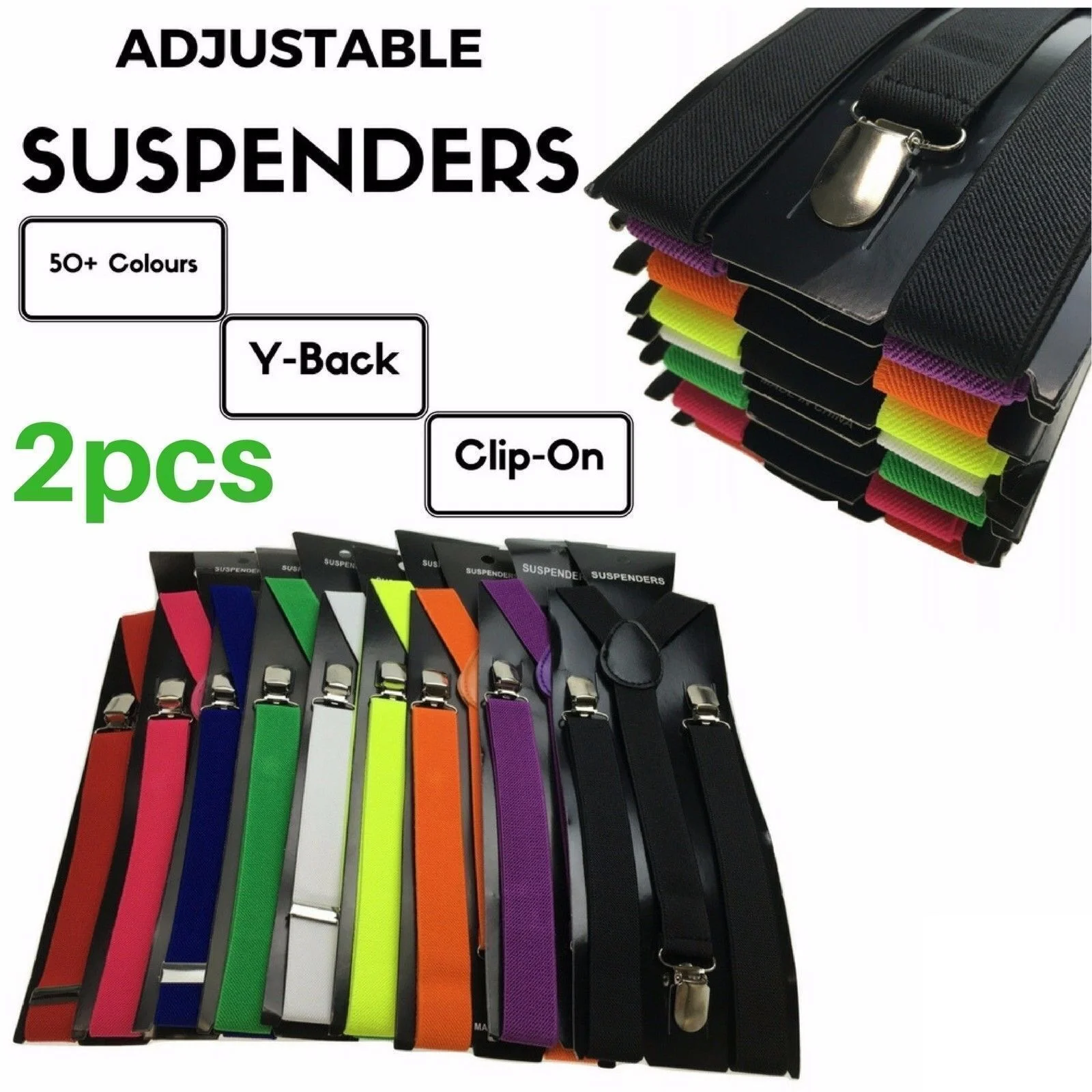 2x Men's Suspenders Braces Adjustable Strong Clip On Elastic Formal Wedding Slim