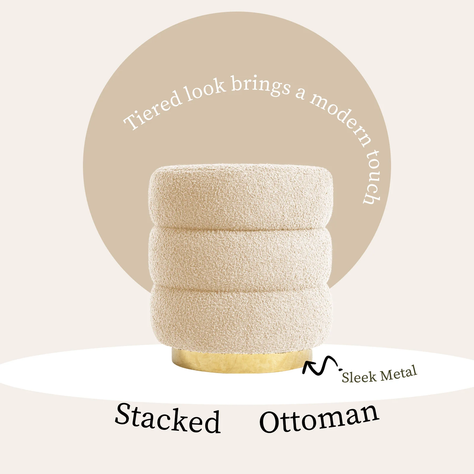 Bring a burst of style and sophistication to your home with this eye-catching round ottoman! With its stacked, cushion-like design, this ottoman makes a bold, modern statement that is sure to turn heads in any room.