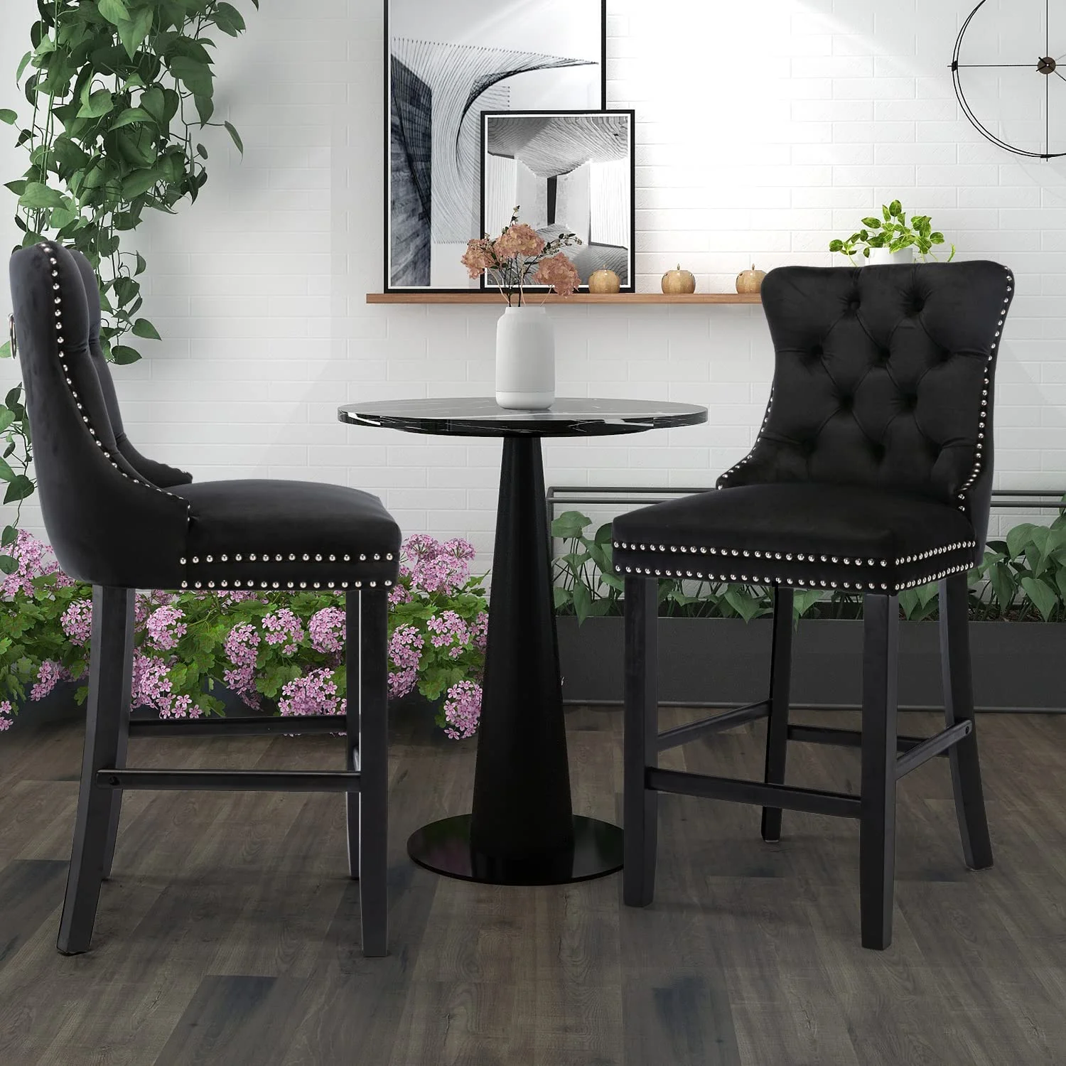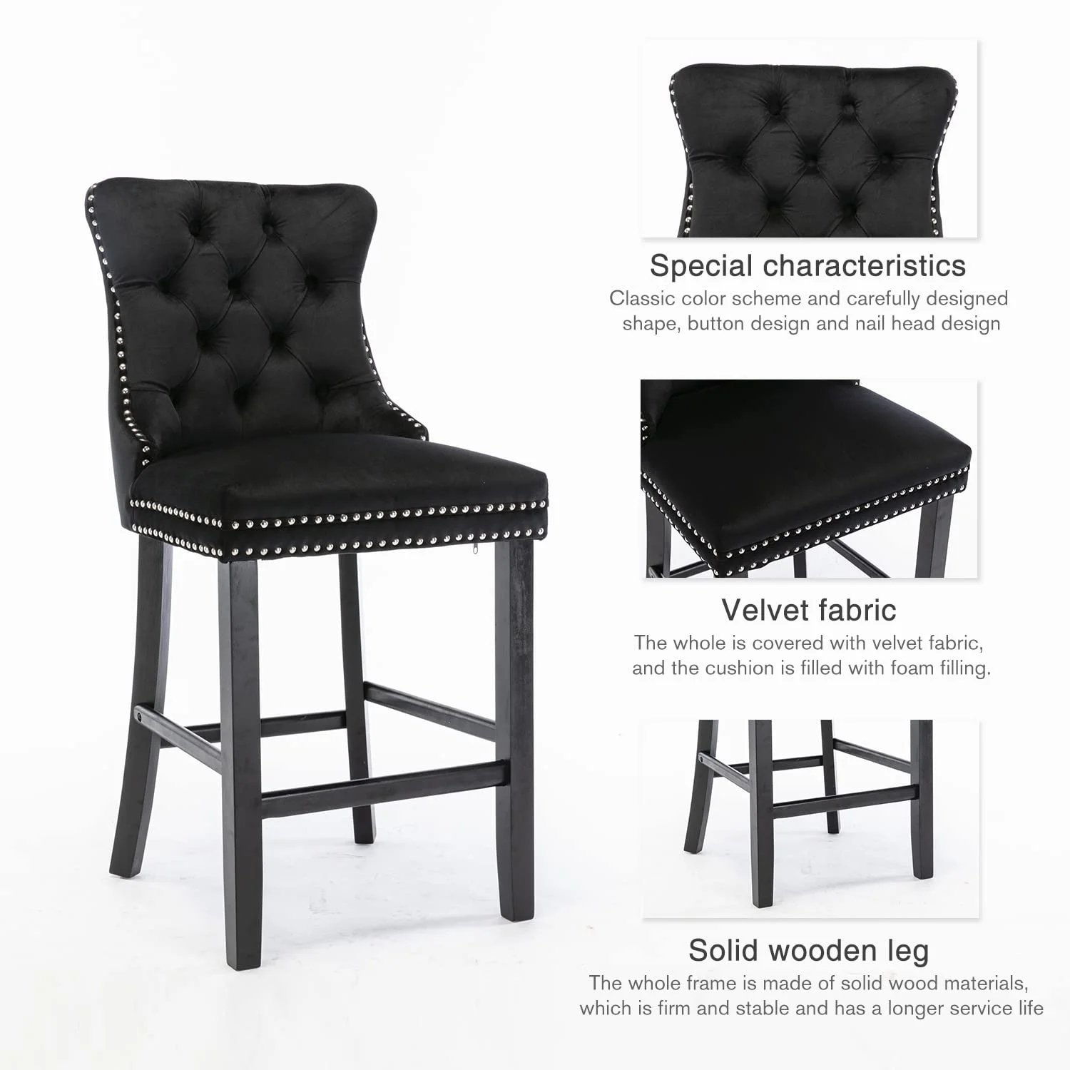 Comfortable Seating: Featuring soft velvet upholstery seat, the bar chair provides a great sitting experience. And the high and ergonomic-designed backrest and footrest can provide more support for your body while sitting, making it relaxing and safe at the same time.