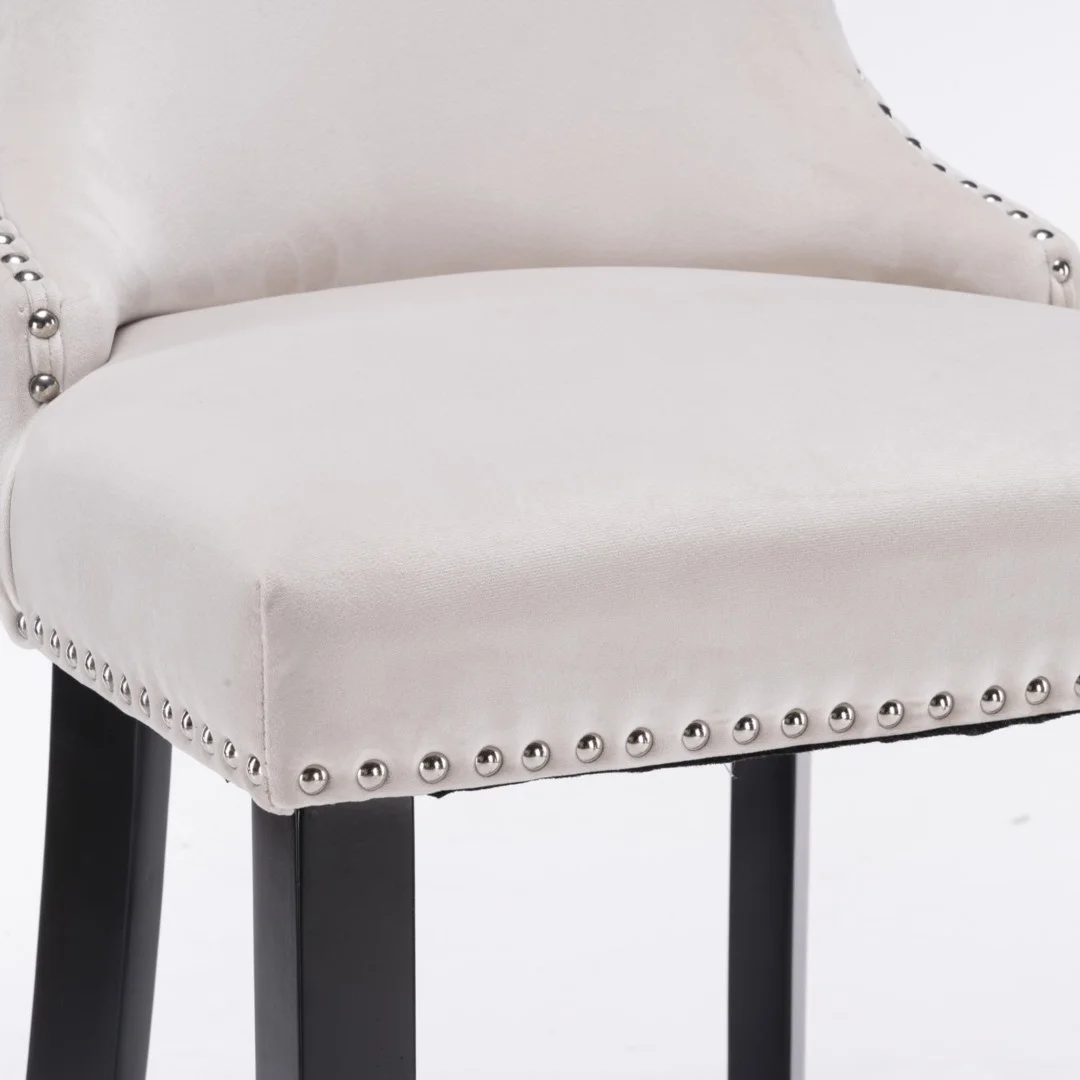 These modern and comfortable velvet bar stools are upholstered in plush thickened velvet (280g) with high-density foam and extremely strong support to provide you with comfortable seating. 4 wooden legs with footrest for a sturdy look and the bottom of bar stools tipped with rubber pads to prevent the chair from sliding on and protecting your floors (wooden floor, marble floor, carpet, etc.)
