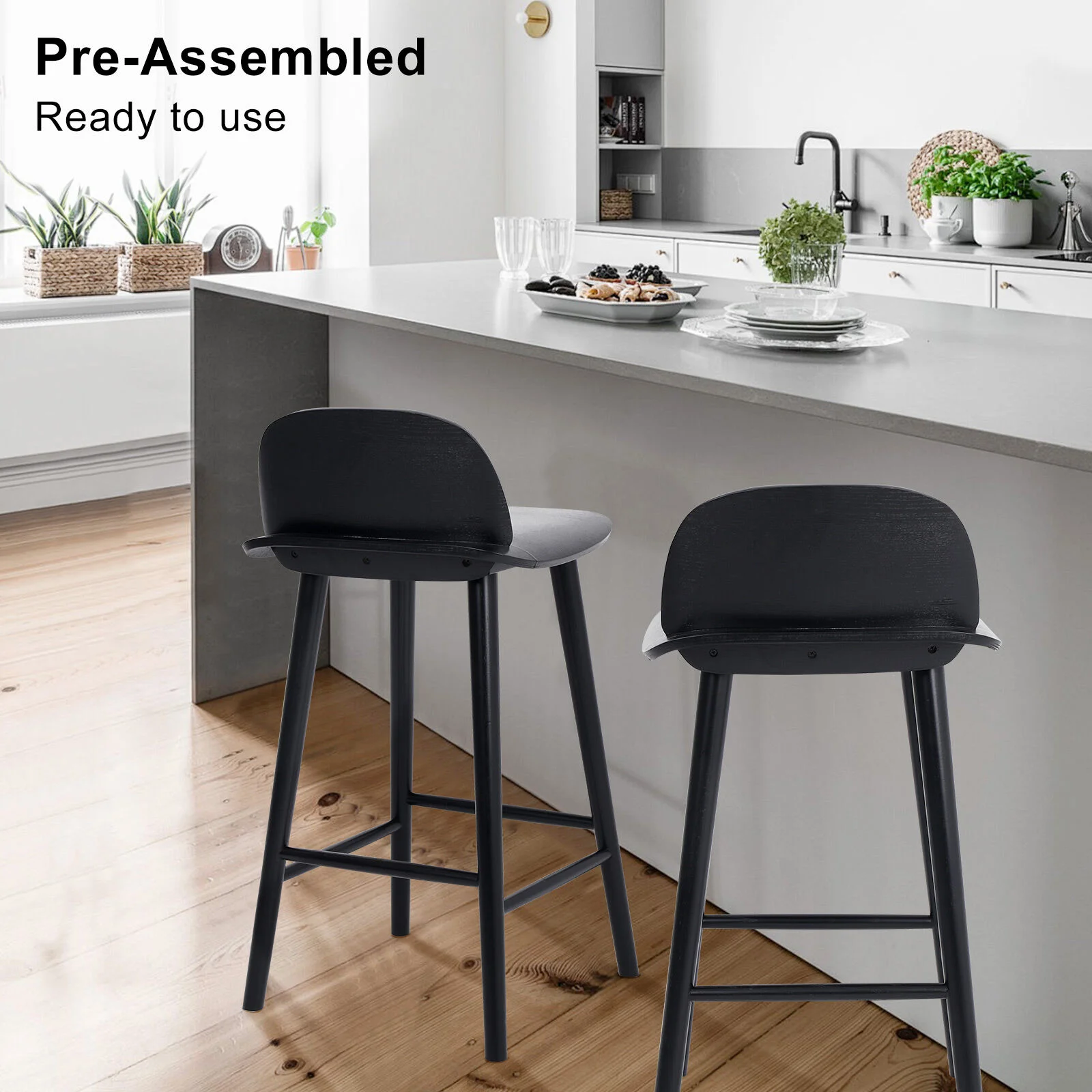 La Bella 2 Set Wooden Bar Stool 65cm ELISE Ash Wood Counter Kitchen Barstools Dining Chair - Black
