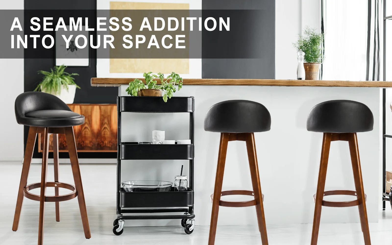 To ensure safety, the legs are tapered outwards to form a slight A-shape, so that the bar stool is well-balanced without occupying too much space. Additionally, the legs are made of solid plywood with a circular footrest to ensure extra sturdiness and support. This does not mean comfort is sacrificed as the seat itself is upholstered with PVC leather padding. Installed with a swivel mount plate, the seat will swivel 360 so that you can reach whatever you want, maximising accessibility. Stool legs are also equipped with anti-slip protectors to minimise scratches onto wooden and tile floors. To give you a peace of mind, the bar stool will only take you approximately 9 minutes to assemble.