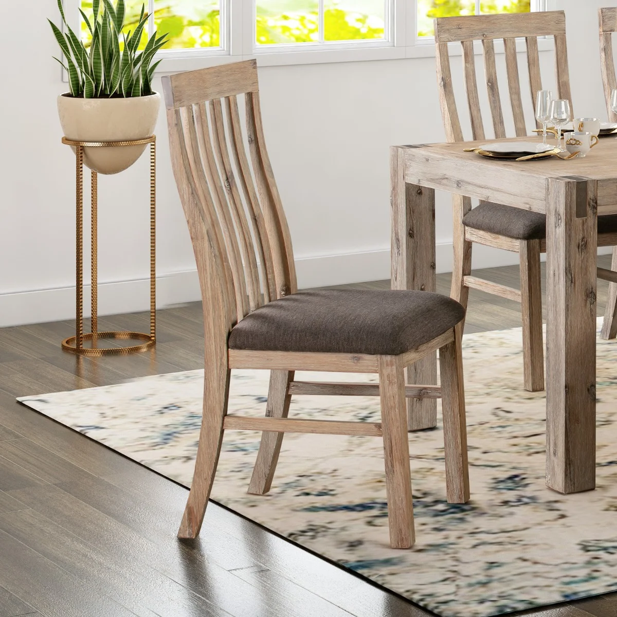 Made from Solid and Veneered Acacia Frames, this dining chair has a strong and sturdy construction.It has a medium high back rest which will allow you comfortable leaning back.