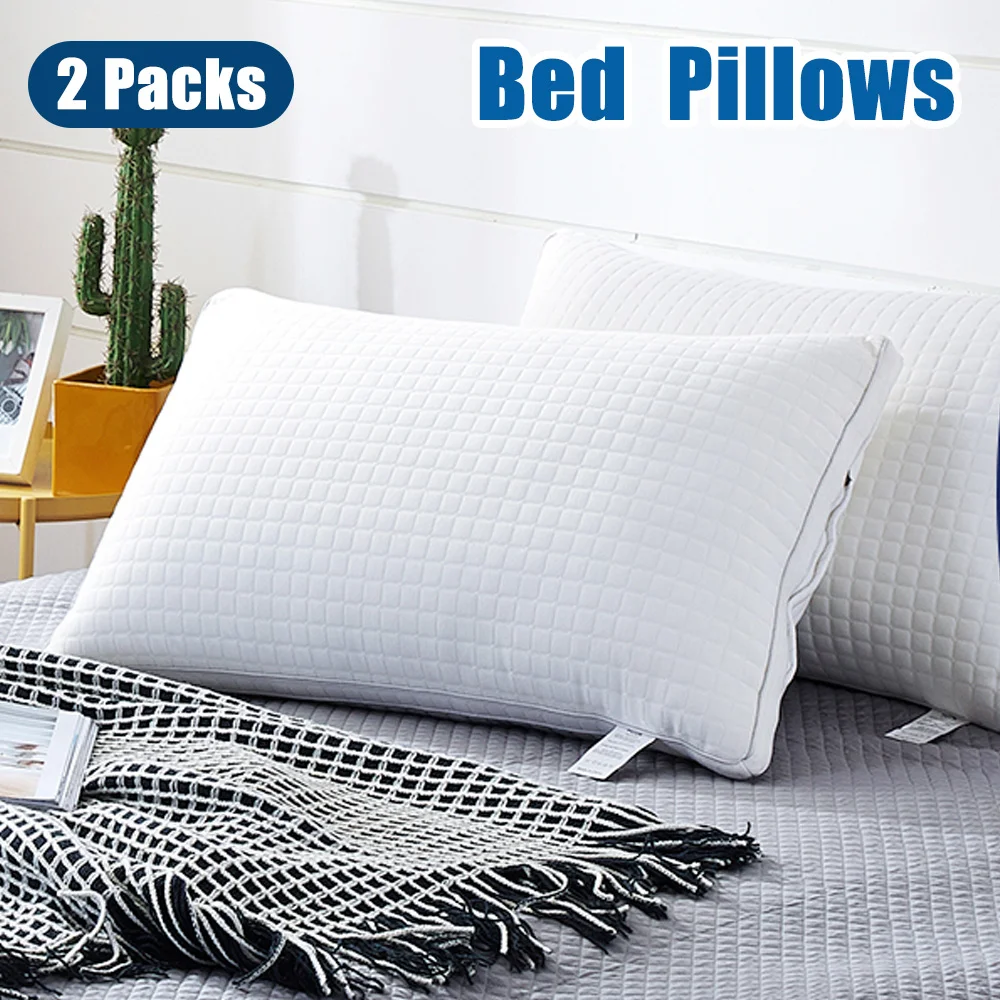 2 PACK BED PILLOWS--These expertly tailored pillows are made from skin-friendly knitted cotton cover with the scientifically proportion of 3D+7D microfiber filling, ultra-soft and fluffy as real down, provide adequate support for your head and neck, just like sleeping on a cloud while using. Whether you prefer soft pillows, this pillow is definitely your choice!