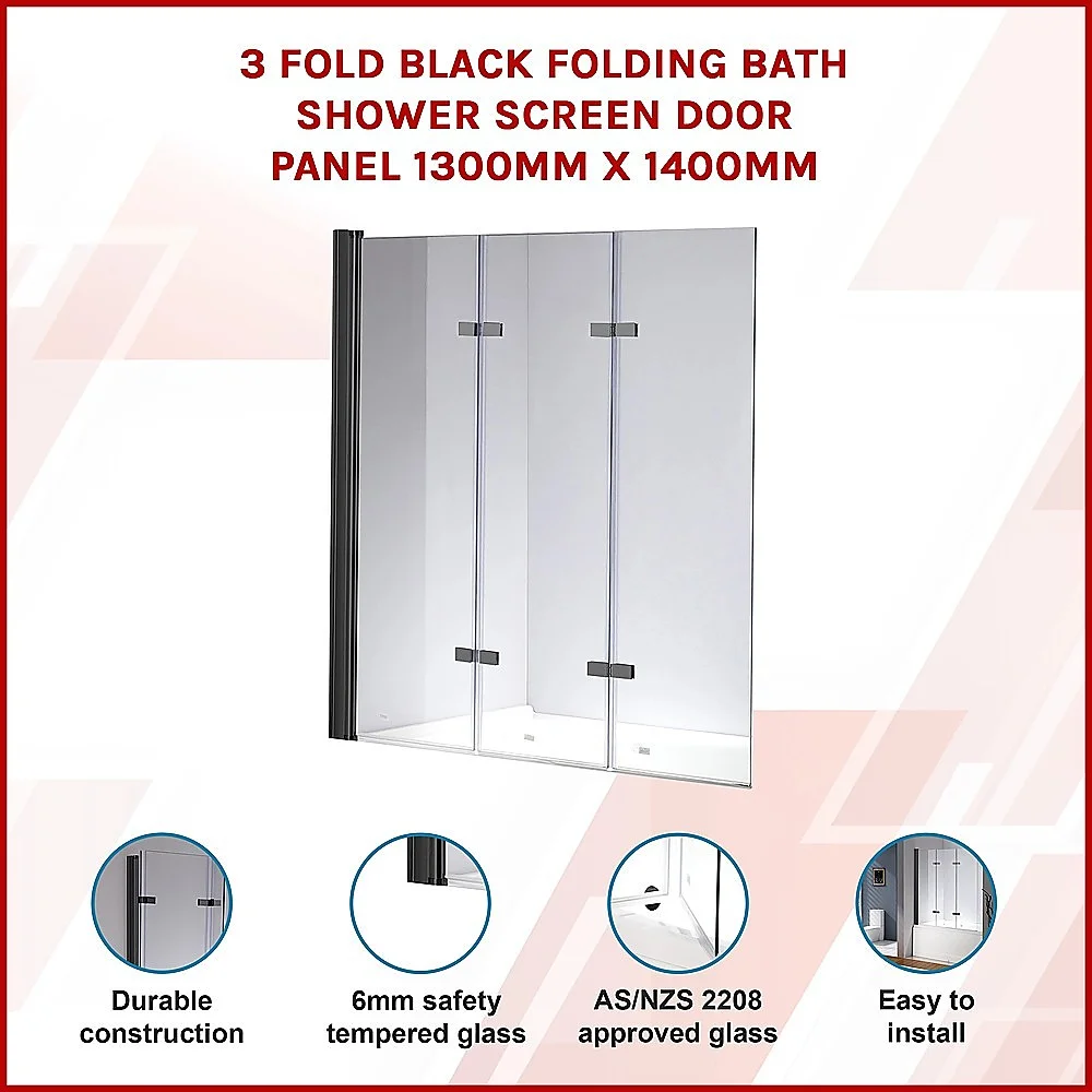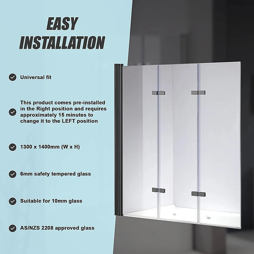 Our three-fold black bath shower door panel will brighten your existing bathroom or be a welcome improvement as a part of your bathroom renovation. This folding shower screen is a plus for both the homeowner and the home developer. The panel's frame is constructed of AS/NZS 2208 approved glass ensures safety and reliability.